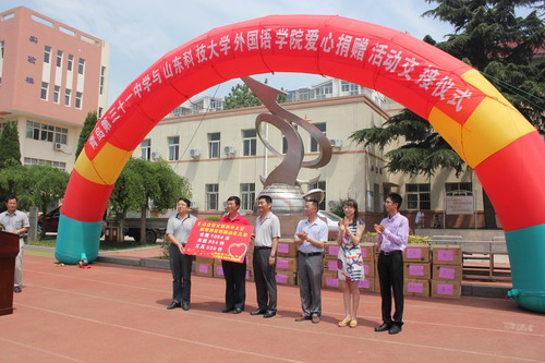交接仪式上,青岛第三十一中学杨天世董事长、公司党委副书记马海超代表双方单位进行了捐赠物品交接。青岛第三十一中的员工代表和萤火公益团队的队员分别作了发言。