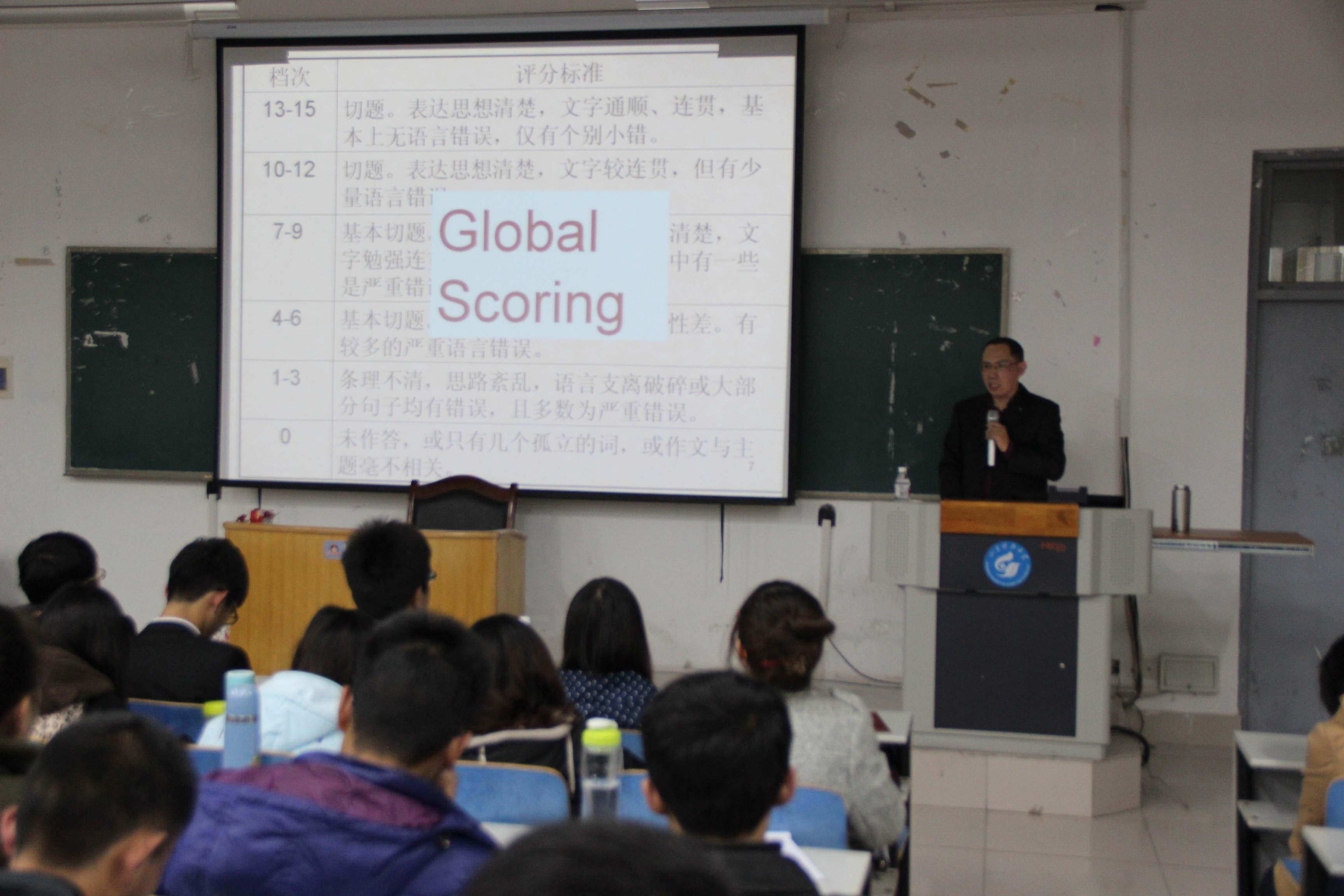 李方木老师就英语四六级考试的改革历程进行了回顾,分析了考试评分标准,讲解了关于写作应对方法、听力方法、阅读语言与思维的要领,并且对老员工日常阅读量提出了建议,点明了外语学习的终极目标:发出中国的声音。师生交流提问环节中,同学们提出了自己在英语学习中存在的问题与困惑,李老师为大家一一解答,提出了自己的建议。