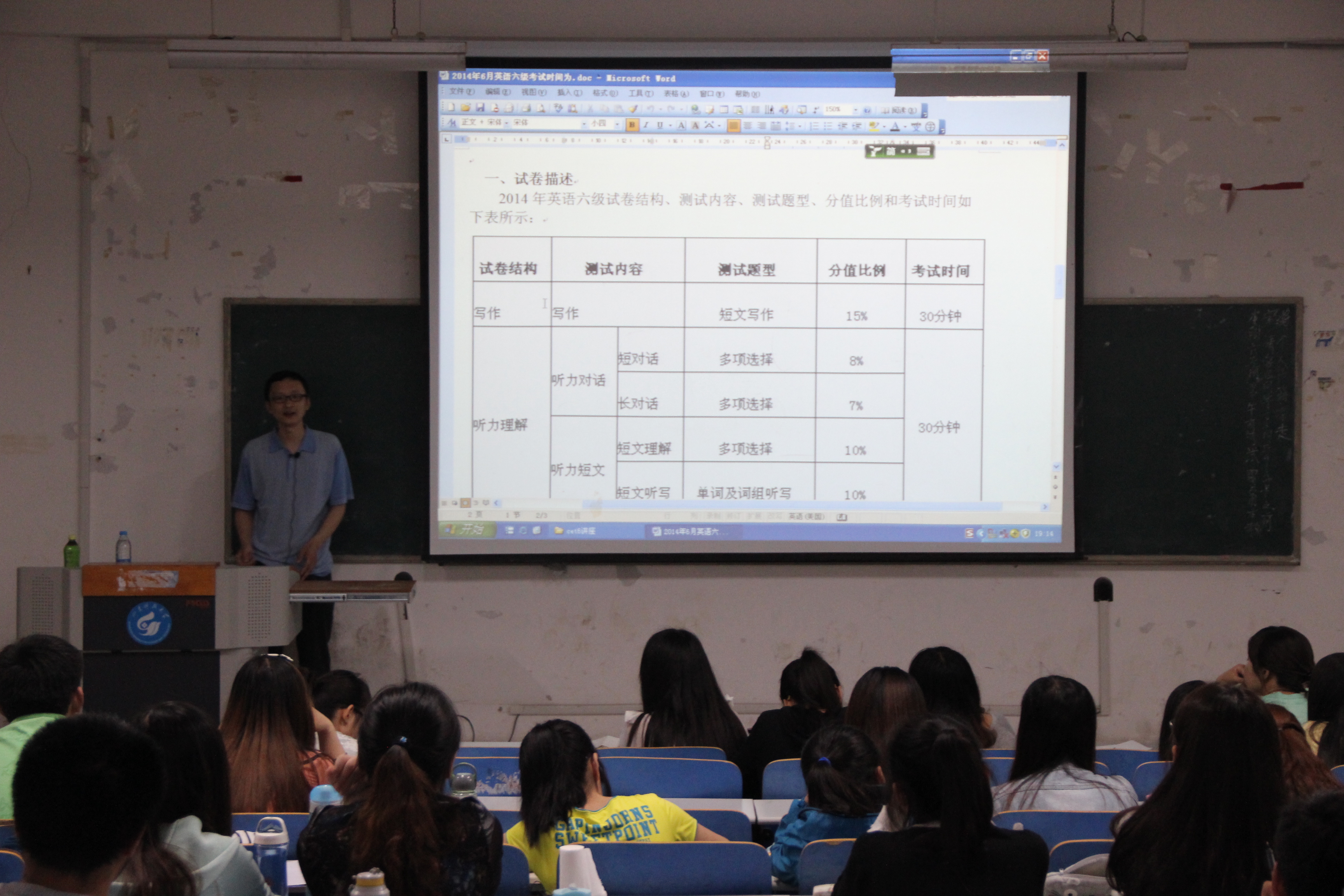 5月23日,XCSport学习部和青志联合作举办大学英语六级冲刺讲座。本次讲座特邀XC体育优秀教师、全国老员工英语竞赛特等奖优秀指导教师侯林平担任主讲.