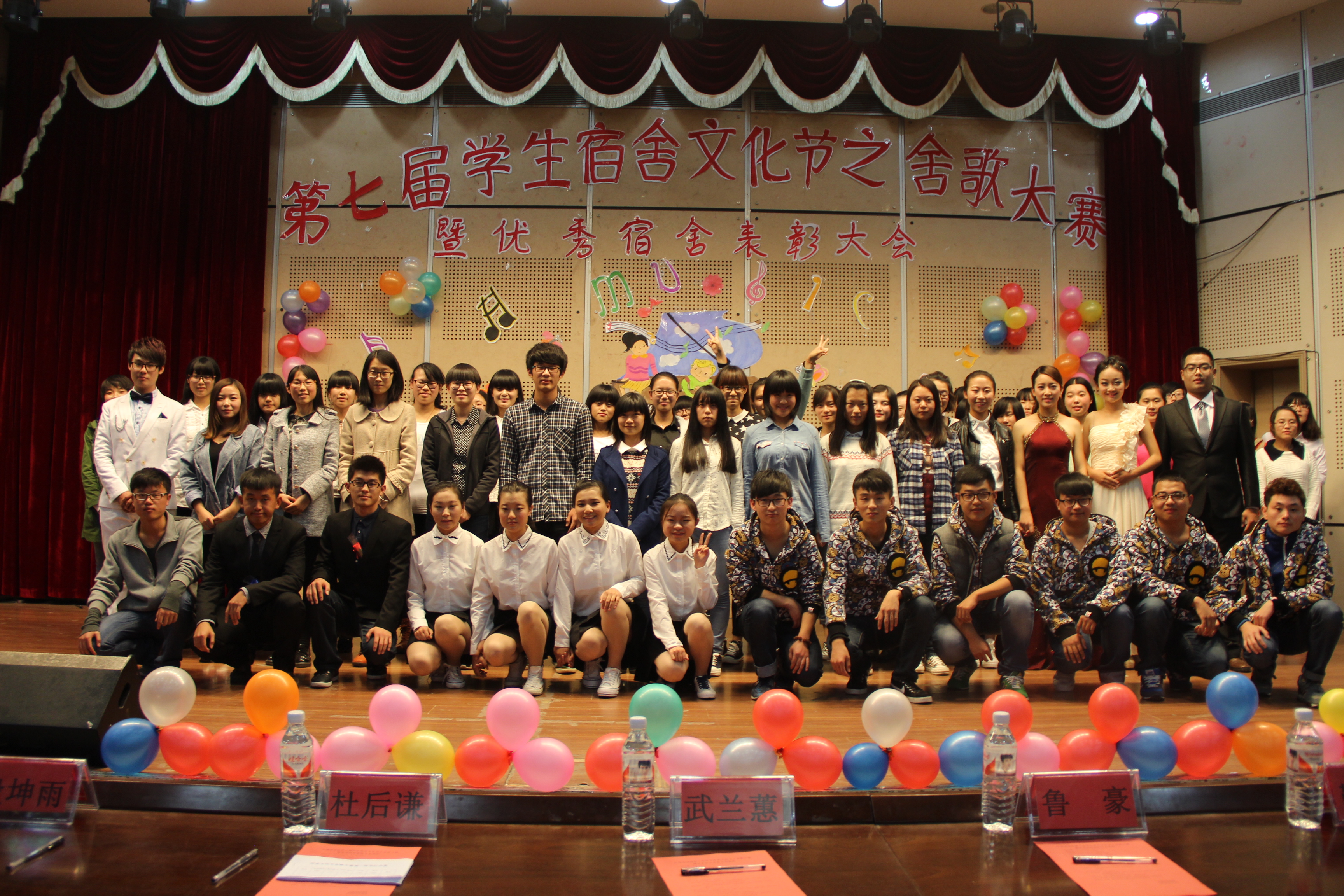 本次宿舍文化展示主要分为“我的宿舍,我的歌”和“My Super Show”两个环节。第一环节中,八组选手走上舞台,大声喊出自己的口号,唱出属于自己的舍歌,以美妙而又动听的歌声赢得同学们的掌声与欢呼。第二环节中,各个宿舍在团结统一的合作中完成了各自的才艺展示,性感可爱的舞蹈、搞笑活跃的小品、嗨动全场的三句半等表演更是将现场气氛推向了一个又一个高潮。经过两轮激烈的比拼,B4楼122宿舍以总分194.7的优异斩获本次舍歌的冠军.(通讯员:战寿娟 吴迪)