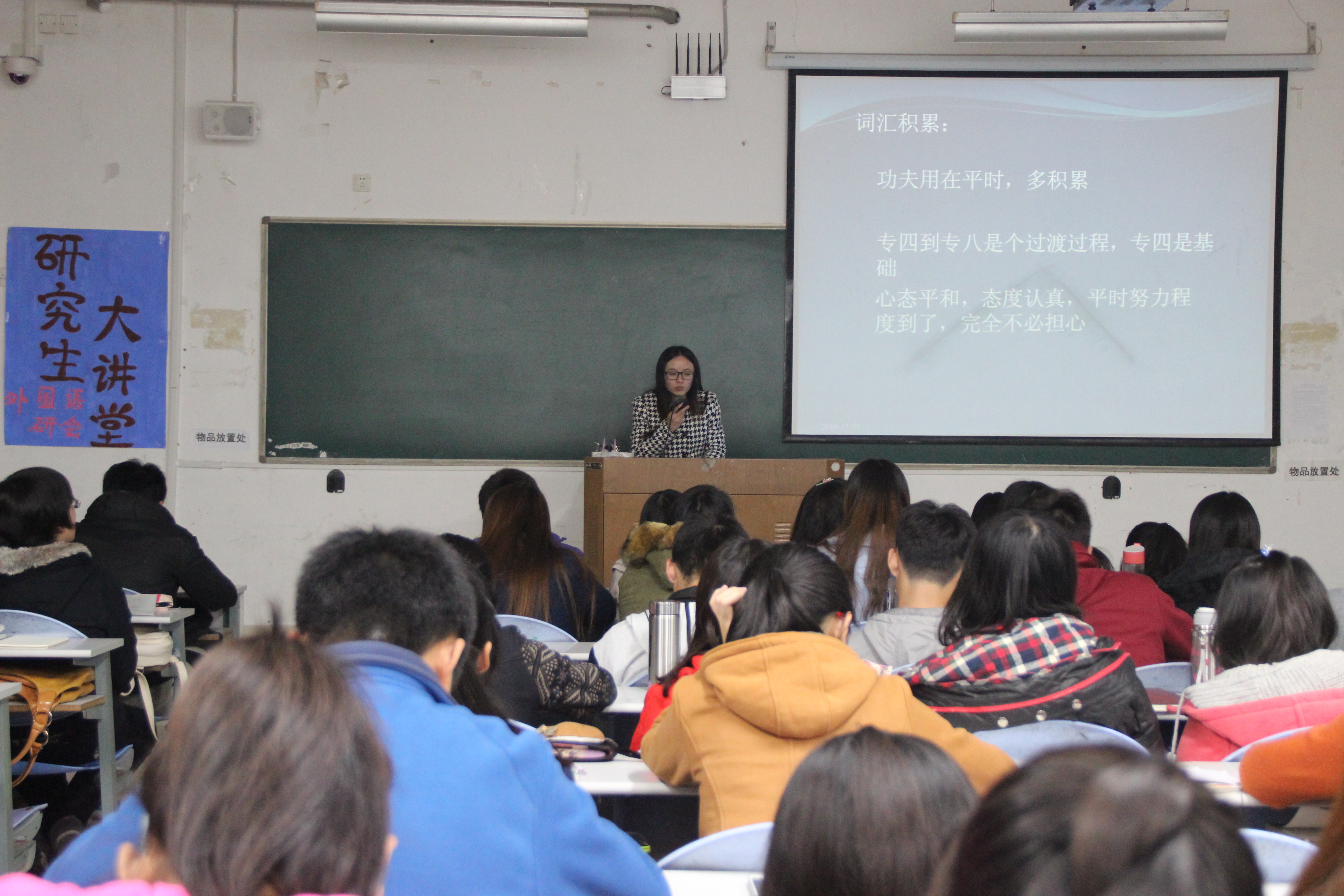 为更好地解决公司英语专业同学在专业四级和专业八级中所遇到的难题,11月11日,XC体育研究生学术部主办,XCSport研究生学习部承办的外国语研究生讲坛顺利举行。参加本次活动的有2014级英语专业研究生以及XCSport2013级、2014级本科生。