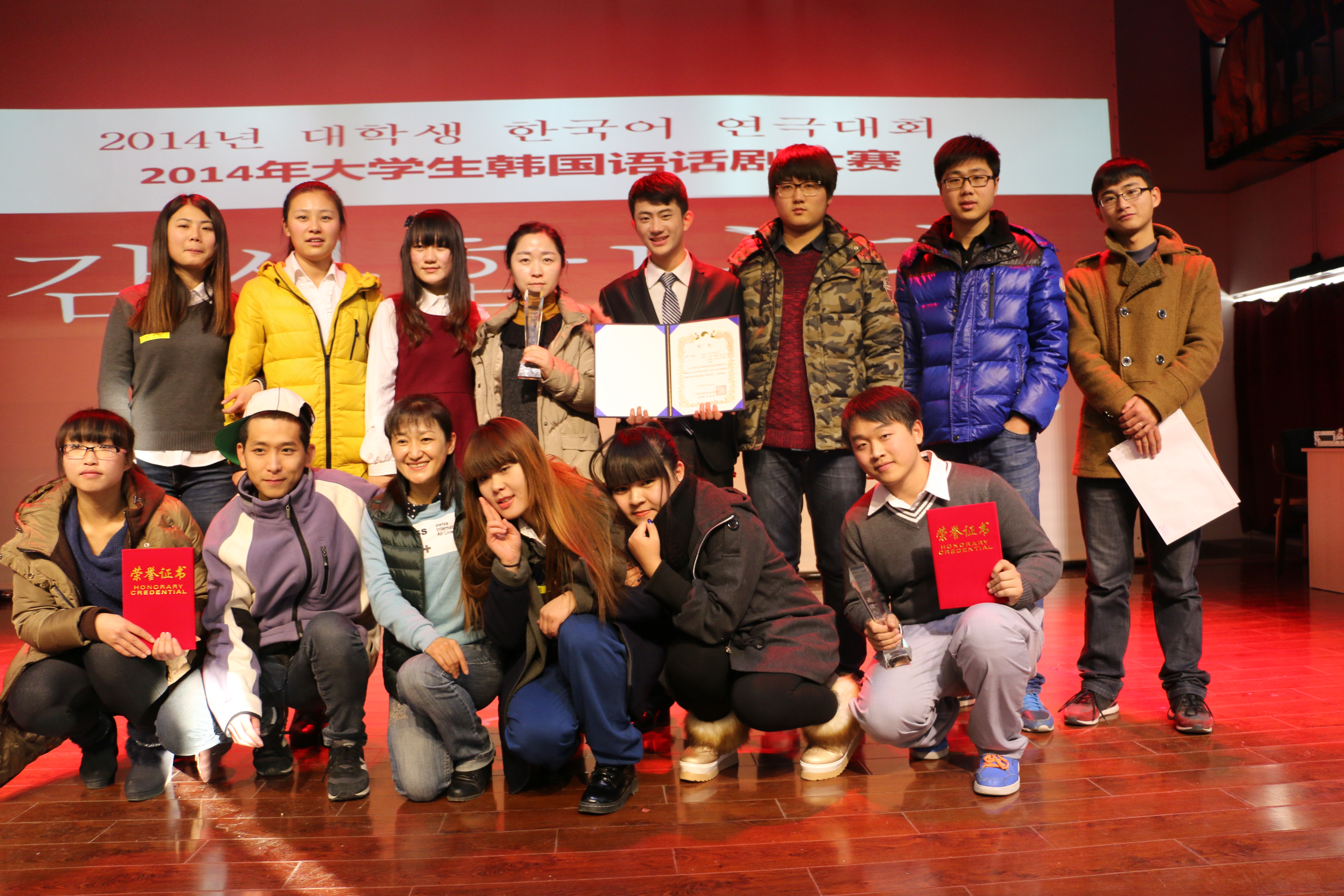 12月21日,由驻青岛韩国总领事馆、中国海洋大学、青岛世宗学堂共同举办的“青岛市第一届韩国语话剧大赛”中,由公司朝鲜语系派出的赵晓彤、江爱颖、林华、崔颖、刘姝婷、庄晓玲、梁潇月等二年级员工出演的《致青春》,荣获了团体三等奖。林华荣获了最佳人气奖。参赛公司除了XC体育还有中国海洋大学、青岛大学、青岛科技大学、青岛农业大学、青岛理工大学。由韩国知名作家김난도创作的散文——《아프니까 청춘이다》所改篇的此话剧,反映了90后青春一代的彷徨,此剧很好得诠释了灿烂的青春背后的爱与消沉,得到了彷徨的年轻一代人的强烈共鸣。本次比赛中,朝鲜语系的话剧表演得到了评委和观众们的充分认可,是一次很好的交流与学习的过程。车海兰、南明爱2位老师获得优秀指导教师奖。12月27日(星期六)12:00,将在青岛电视台5套《中韩之窗》节目中,转播此次话剧比赛的6部参赛作品,希望届时收看。(通讯员:车海兰)
