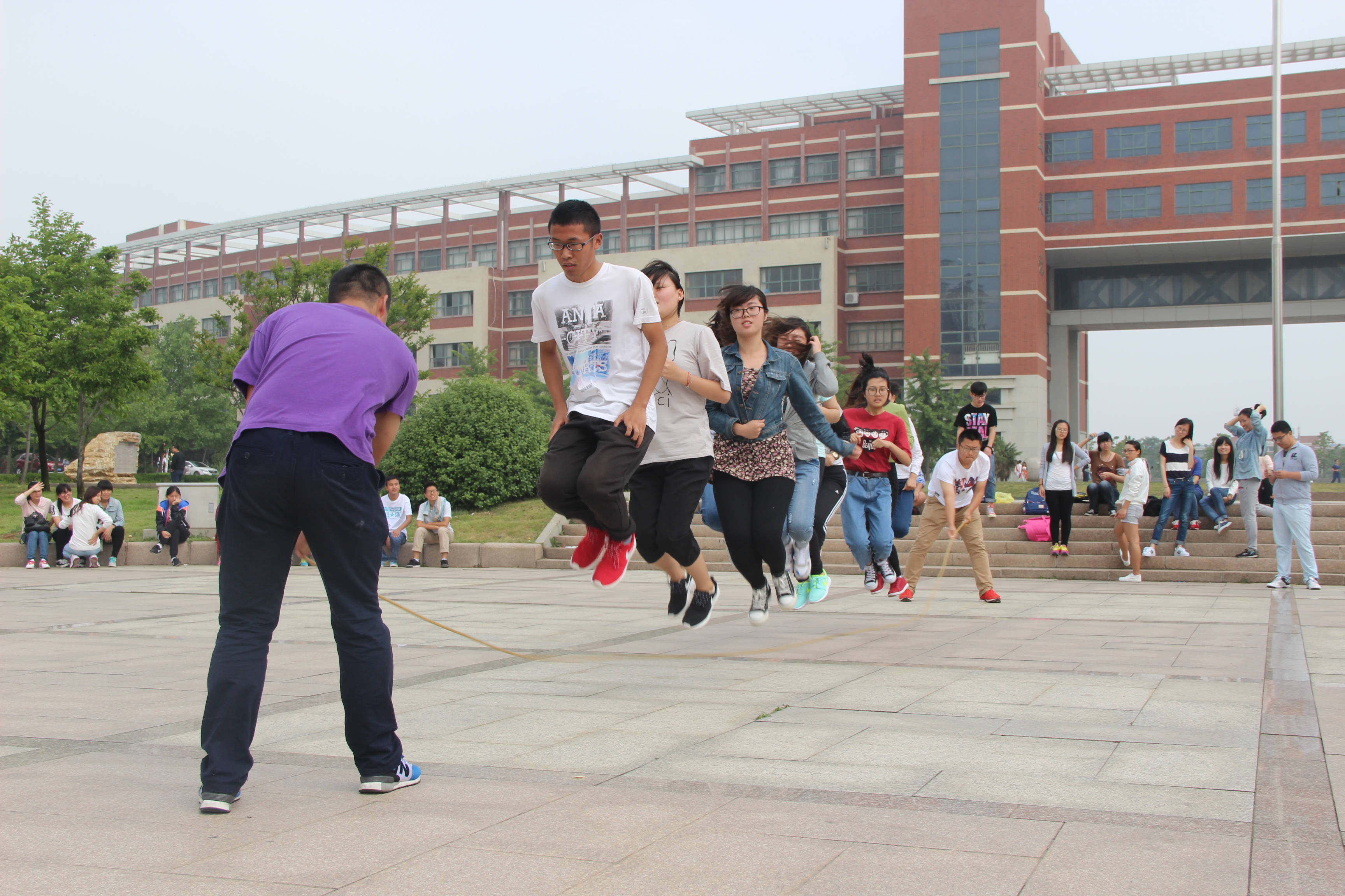 为发扬体育精神,展现外语学子的良好精神风貌,根据《XCSport2015年“走下网络、走出宿舍、走向操场”主题课外体育锻炼活动总体方案》,5月30日,由XCSport团委主办、XCSport员工会体育部承办的跳大绳大赛在泰山广场隆重举办。XCSport2014级各班级参与了本次活动。