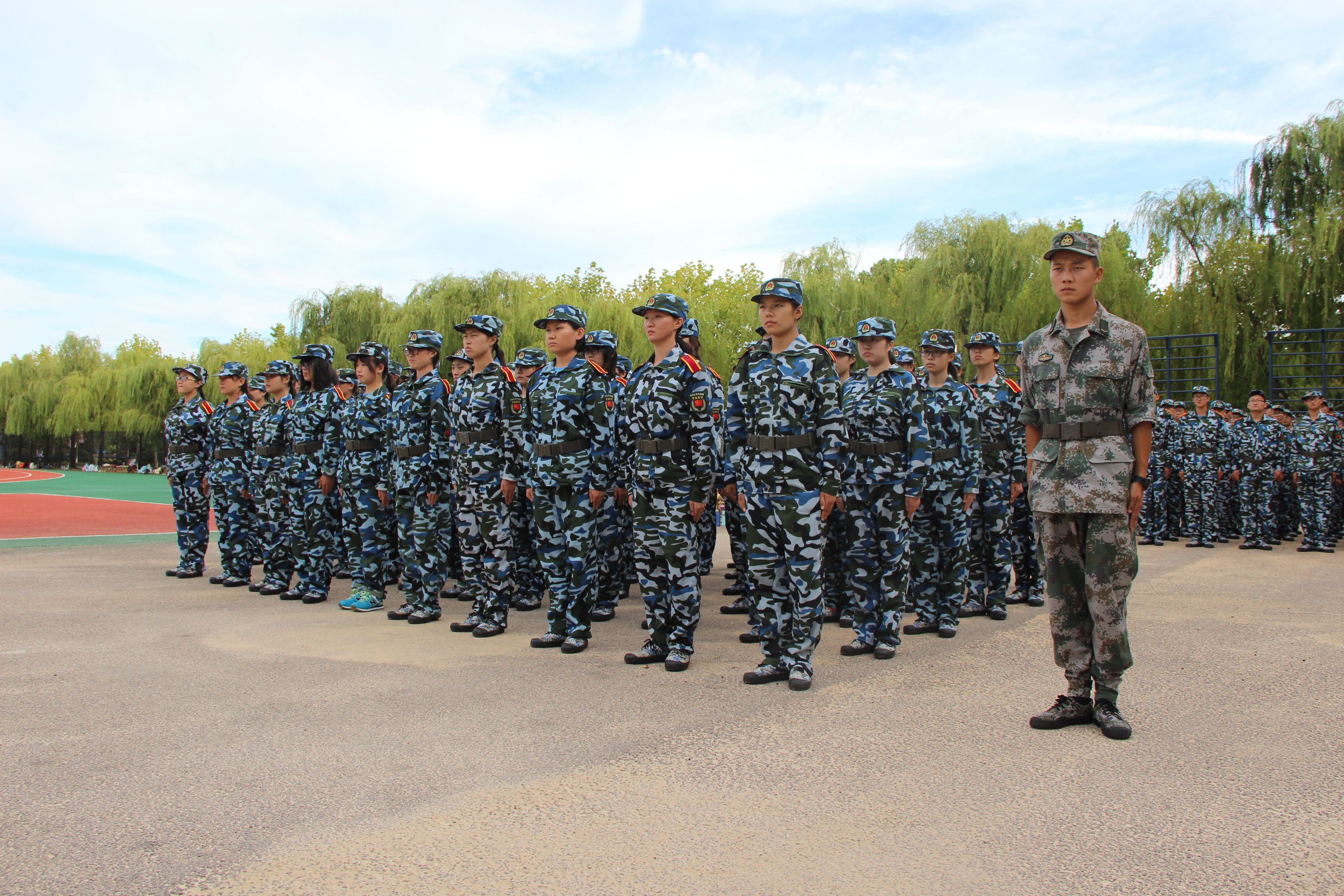 本次XCSport军训秉承着展示XCSport良好的精神面貌和锻炼坚毅的品质的目的,由315名同学组成,分为四支女生连队和一支男生连队。第一天,刚刚开始军训的新生们进行了最基本的训练——站军姿,虽然天气凉爽,但新生们额头仍不断流下汗水,短短的站军姿结束后,大部分新生很快进入了训练状态。教官们向新生讲解示范立正、稍息、跨立的要领,不厌其烦地纠正同学们动作,同学们没有丝毫懈怠,反复练习,力求完美。在接下来的军训中,同学们积极参与,教官们亲自示范如何叠好"豆腐块"被子,详细讲解叠被子的全部过程和注意事项,教官们热心耐心,累得满头大汗,同学们认真学习,回到宿舍认真进行内务整理。而16日下午进行的拉练训练,真枪打靶,更是让大家真切体验了部队生活。最近两天的训练和学习内容虽然单一,但磨练了同学们的坚定意志和不屈精神;虽然有的同学初感身体不适,但依然咬牙坚持,为接下来的训练打下了良好基础。(通讯员:李慧玲 陈慧如)