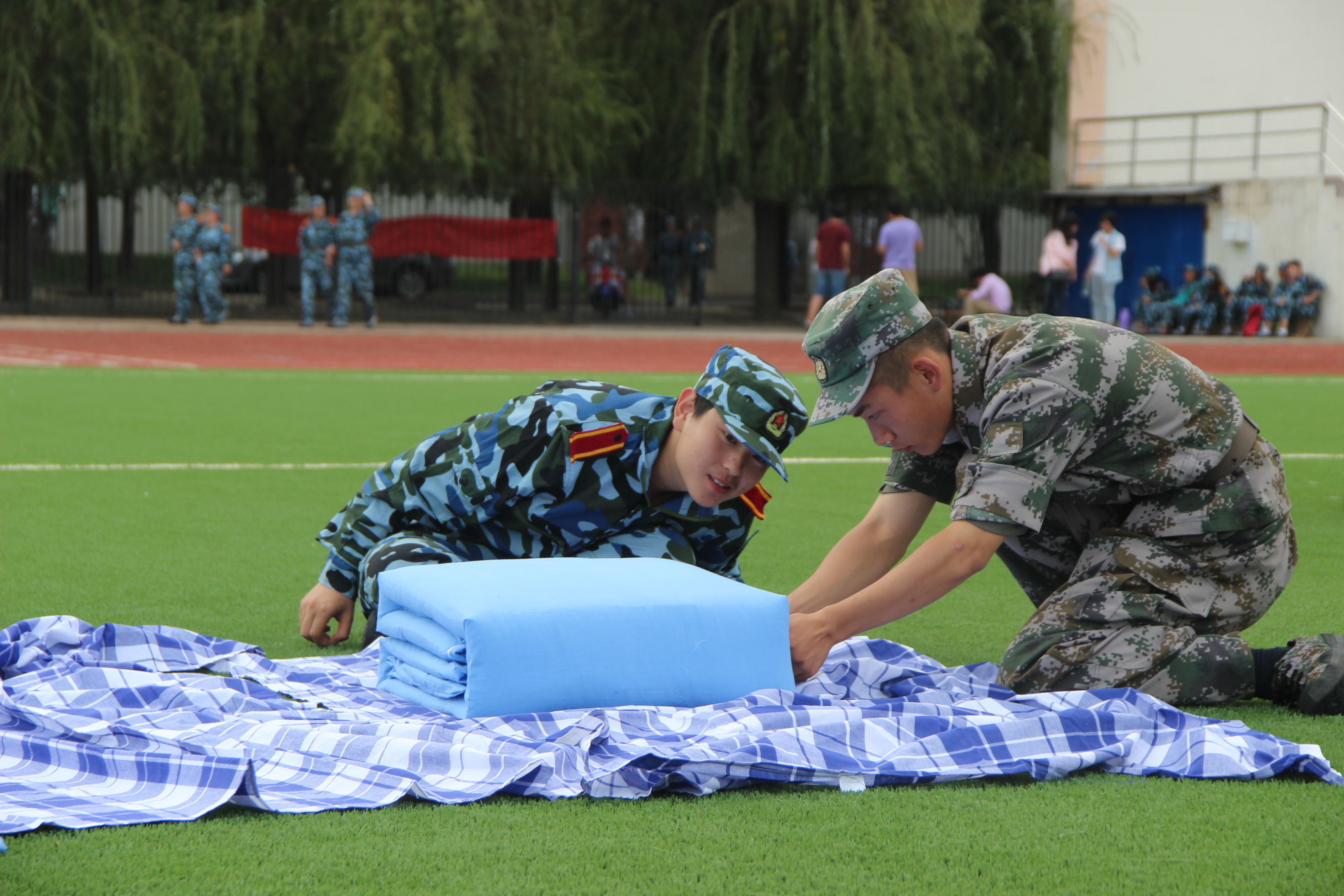 为做好2015级新生军训工作,XCSport坚持“严要求、重细节”的指导方针,狠抓军训效果。军事训练项目上,站军姿、稍息、立正、齐步走、跑步走……教官都严格要求,对不到位的动作反复纠正;叠军被,教官努力做好演示、要点指导,要求员工切实领会压、量、切、塞、扣、修等要领;整理内务方面,从卫生要求、物品摆放等方面一一示范;场地马扎摆放,划线标点,要求整齐划一,水杯放置排列有序。