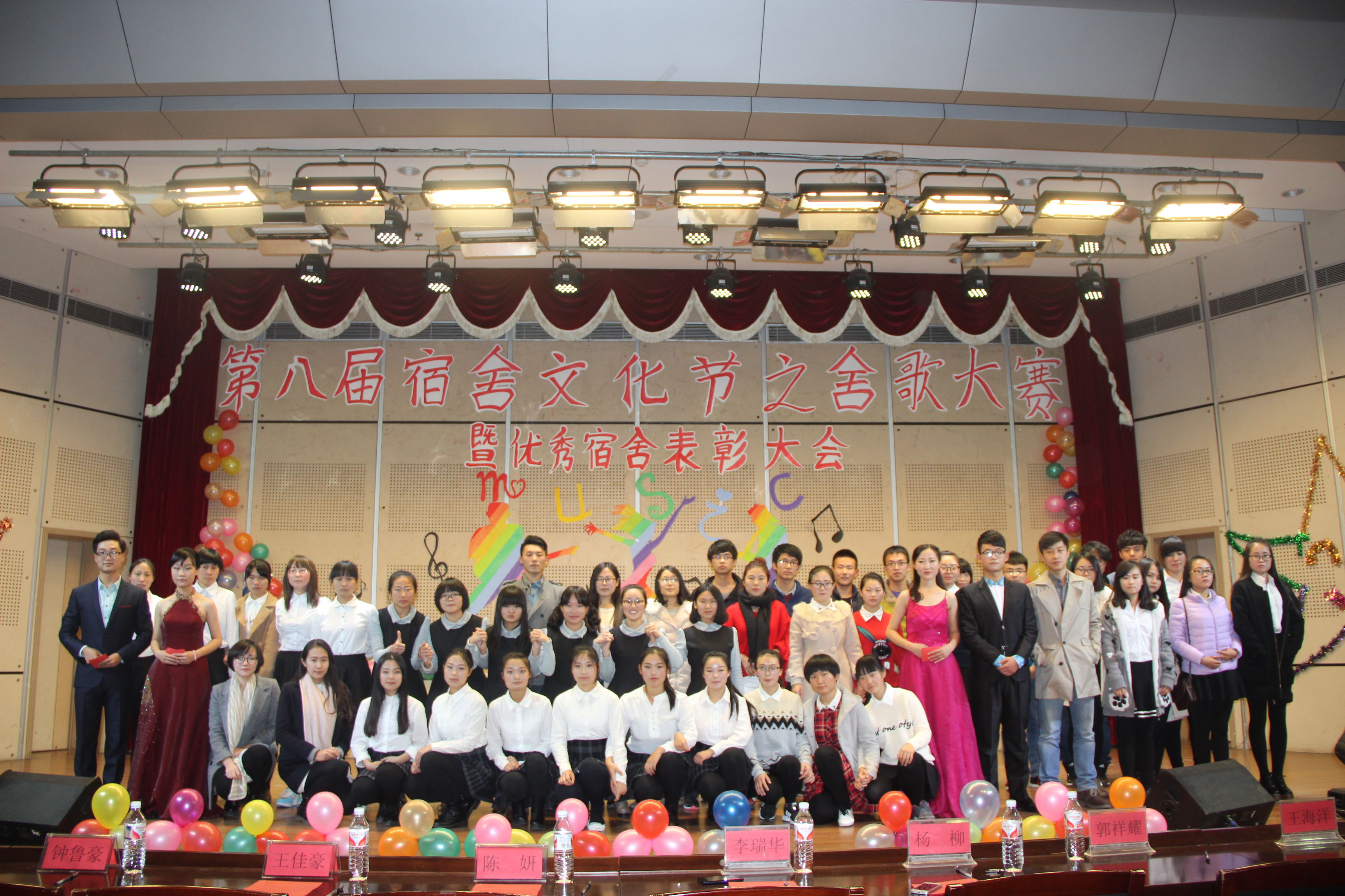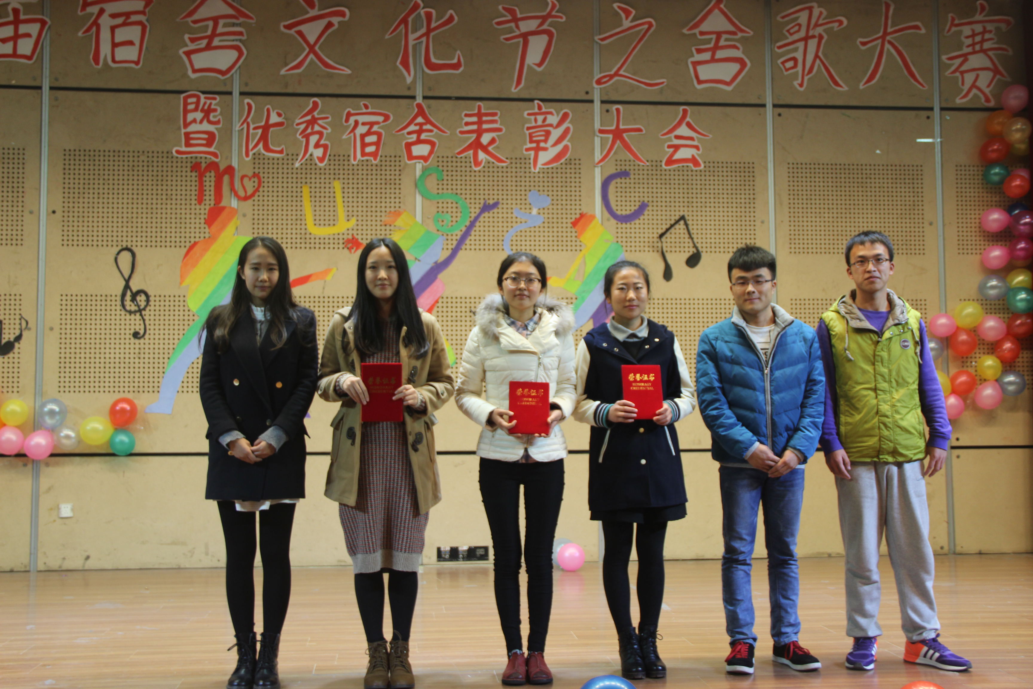 本次活动以“音乐伴随成长,友谊地久天长”为主题,面向14级、15级全体同学,共分为两个环节。首先,在第一环节“想把我唱给你听”中,参赛选手以宿舍为单位进行舍歌演唱,并且均配有选手们精心制作的PPT,由此展示出各个宿舍团结向上的氛围。《我们都一样》、《依然爱你》等歌曲青春洋溢,演唱温馨动人,现场掌声不断。活动间隙,主持人邀请现场观众参与“你画我猜”的游戏环节,现场观众积极响应,配合默契。接下来,在第二环节“我有我的young”中,歌曲、舞蹈、小品表演等形式丰富多彩,各个宿舍凭借精彩绝伦的才艺表演赢得现场一片喝彩,将本次活动推向高潮。最后,在现场的热烈气氛下,B4-246宿舍斩获本次舍歌大赛一等奖,A2-119,A2-113荣获二等奖,A2-642,A2-120等宿舍取得第三名的好成绩,并且嘉奖了表现出色的优秀宿舍,以资鼓励。本次舍歌大赛不仅活跃了校园气氛,更增强了宿舍凝聚力。至此,第八届宿舍文化节之舍歌大赛暨优秀宿舍表彰大会圆满结束。(通讯员:陈慧如 许艳梅 高丽刚)
