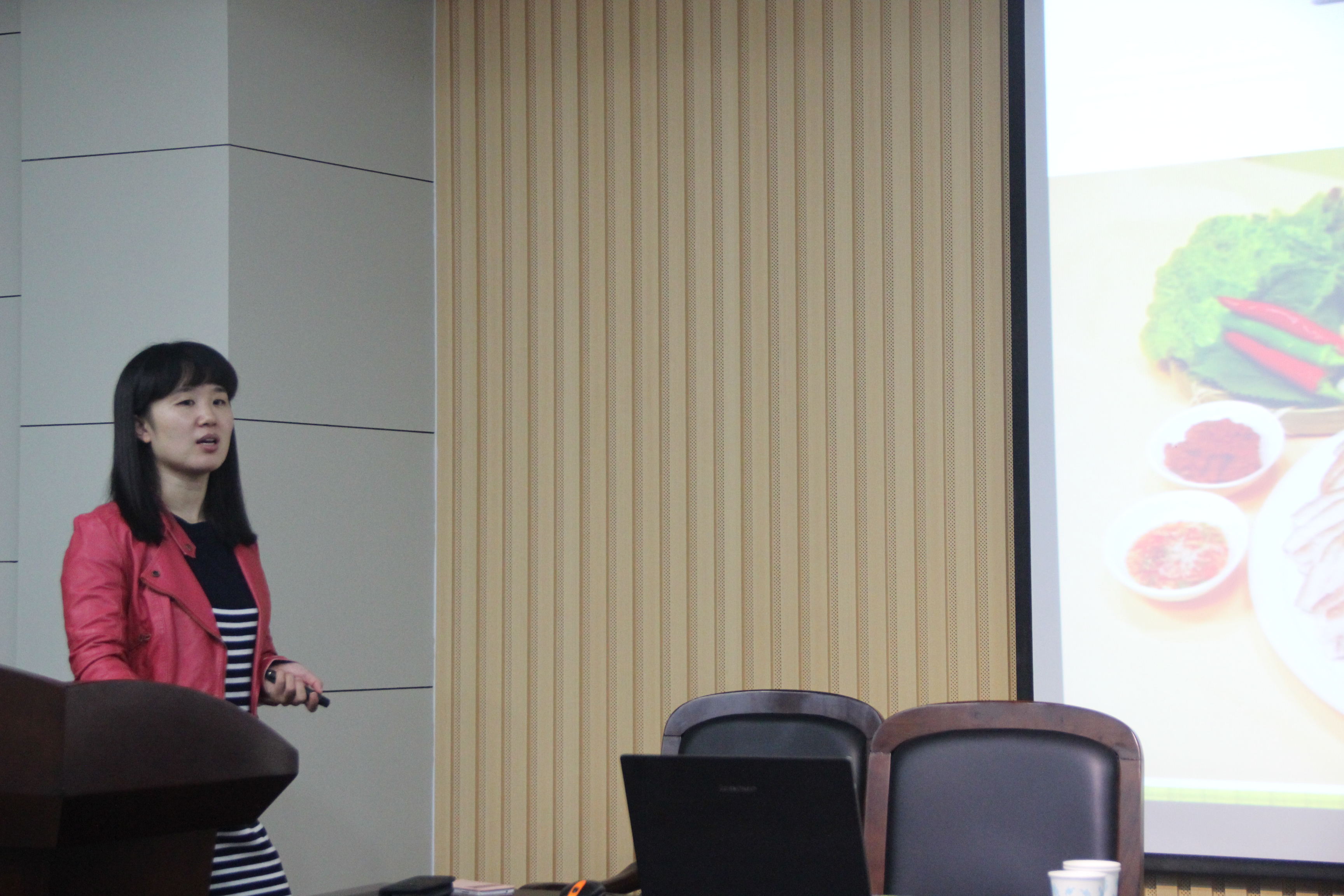 本次交流分享会以韩国饮食文化和韩国餐桌礼仪为主题。首先,张晖老师向同学们介绍了多种韩国饮食,包括韩国泡菜、韩国酱汤还有年糕等,从食品的历史由来到制作过程,每一环节都给同学们一个全新视角看待韩国饮食文化。接下来张晖老师结合自己在韩国的亲身经历向同学们介绍了多种韩国餐桌礼仪。韩国礼仪受许多传统思想的影响绵延至今。通过了解学习韩国的礼仪文化,有利于同学们更好地理解有关特定的文化风俗。(通讯员:陈慧如 高萌 高丽刚)