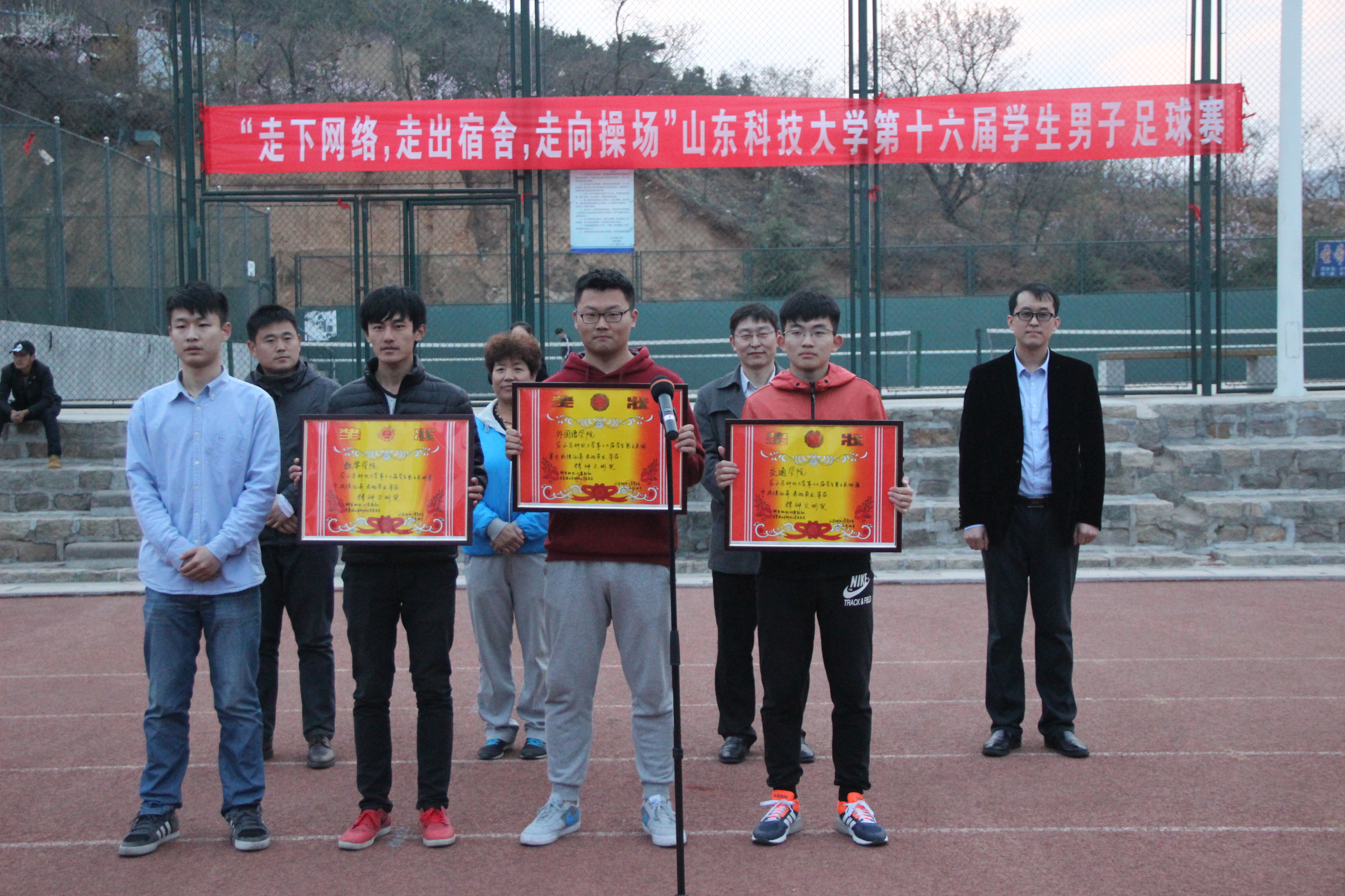 4月5日下午,“走下网络,走出宿舍,走向操场”XC体育第十六届员工男子足球赛于高地操场圆满闭幕,莅临本次闭幕式的各位嘉宾有校团委秦昌盛副书记、校体育运动委员会副秘书长李梅月老师、校团委朱永帅老师、本届足球赛裁判长体育公司赵鹏老师、校员工会主席张鑫达同学等。参加本次闭幕式的还有各公司代表队和运动员。
