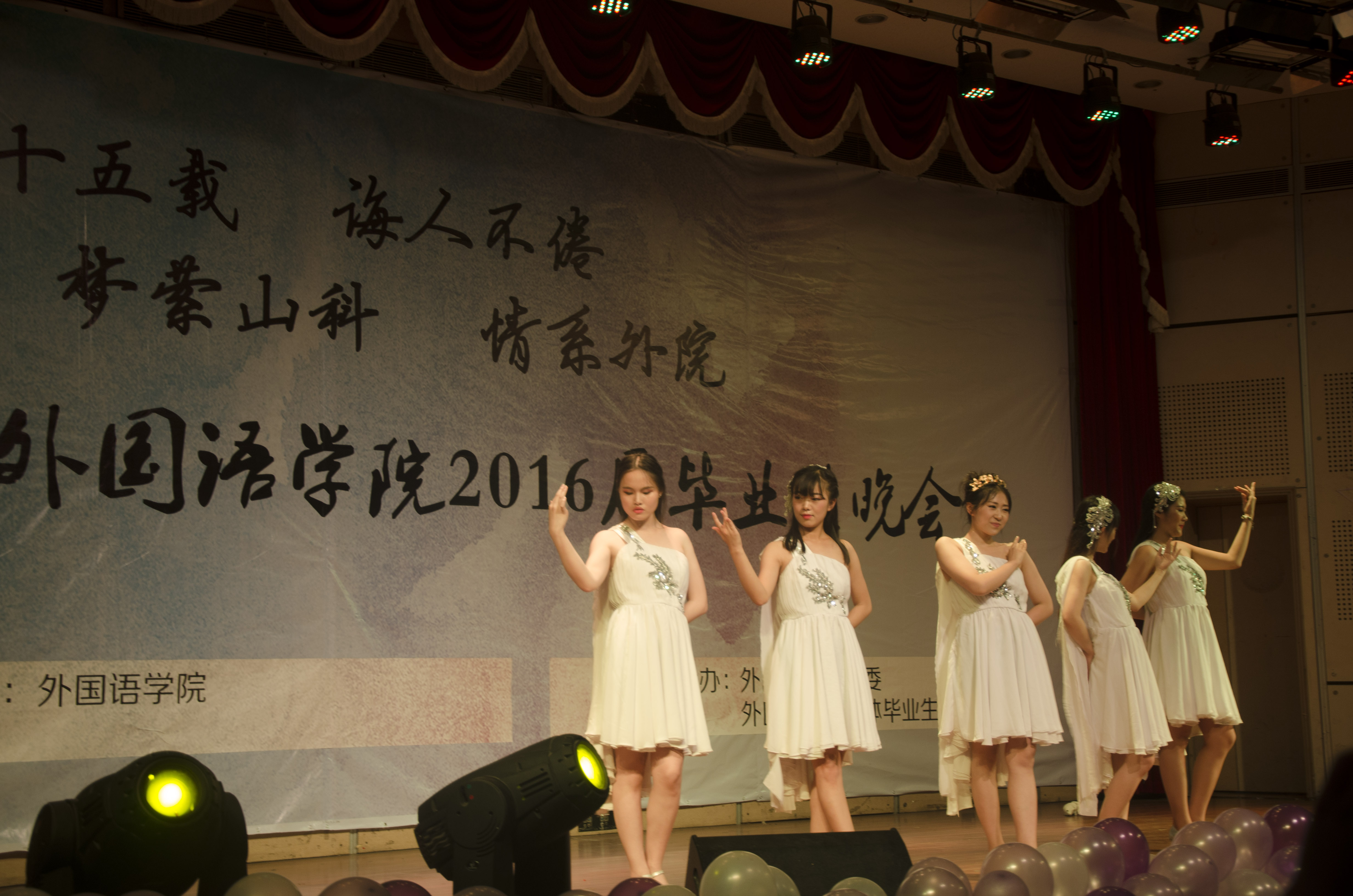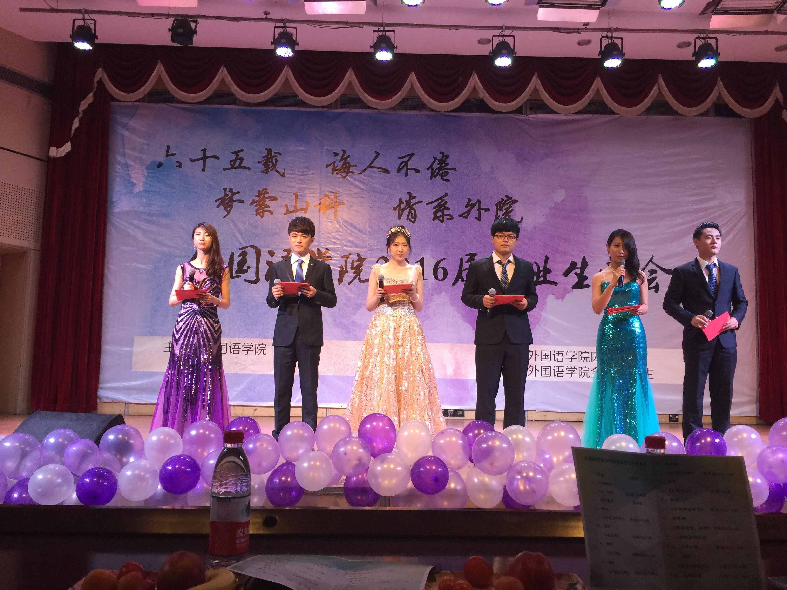 全体毕业生精心准备的13个节目依次亮相,每一个节目都饱含对公司、公司、老师、同学的留恋与不舍、感恩与祝福。英语2012级1班带来的话剧《欢乐颂》形象展示了大家走向工作岗位之后的生活,英语2012级3班带来的歌曲《你曾是少年》唱出了大家大学四年美好的青春,朗诵《我在这里,你呢》深情传达出大家对未来的期待,晚会在精彩的歌曲串烧中落下帷幕。(通讯员 战寿娟)