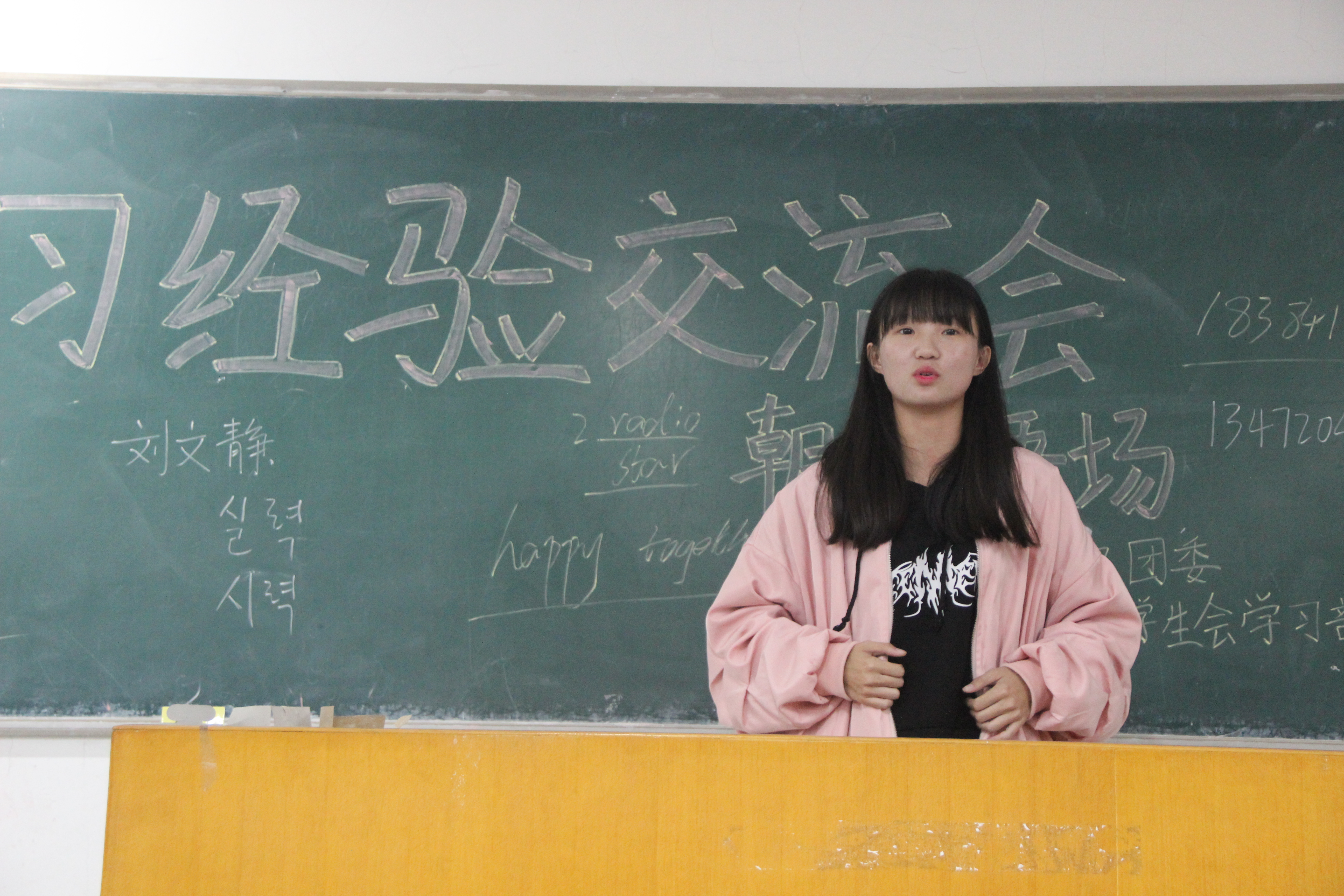 为了帮助同学们找到科学有效的学习方法,正确处理学习、工作、生活三者之间的联系,10月21日,由外国语团委主办、XCSport员工会承办的学习经验交流会朝鲜语场正式举行。本次活动邀请了2014级刘璐璐,2015级张梦莹、刘文静为2016级朝鲜语新生进行分享交流。