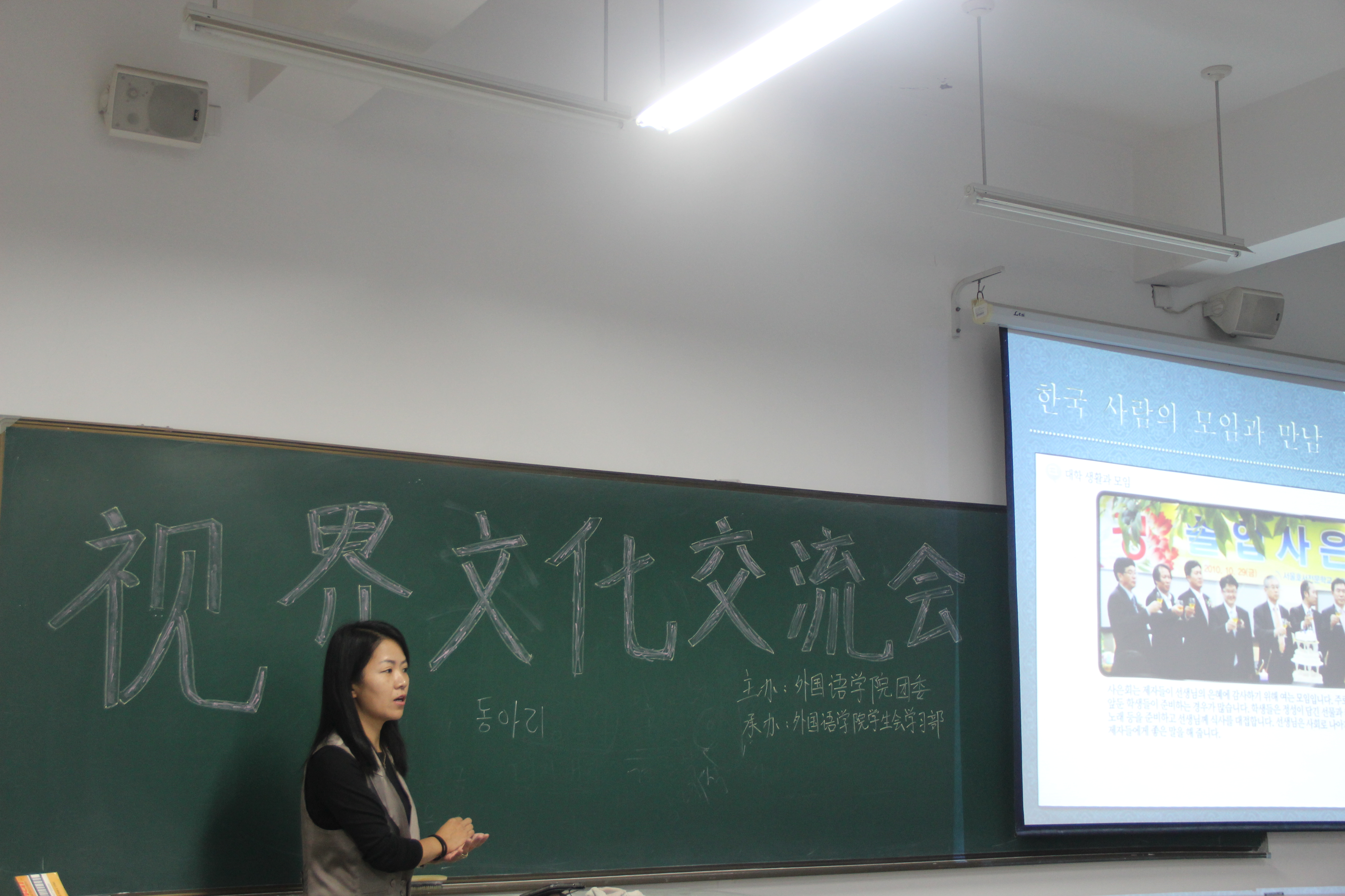 为了开阔员工的文化视野,增加对韩国文化的了解,10月27日下午,由XCSport团委主办、XCSport员工会承办的视界文化交流会——朝鲜语专场正式举行。本次交流会由朝鲜语专业外教柳在元老师为同学们讲解有关韩国聚会和见面的相关知识。