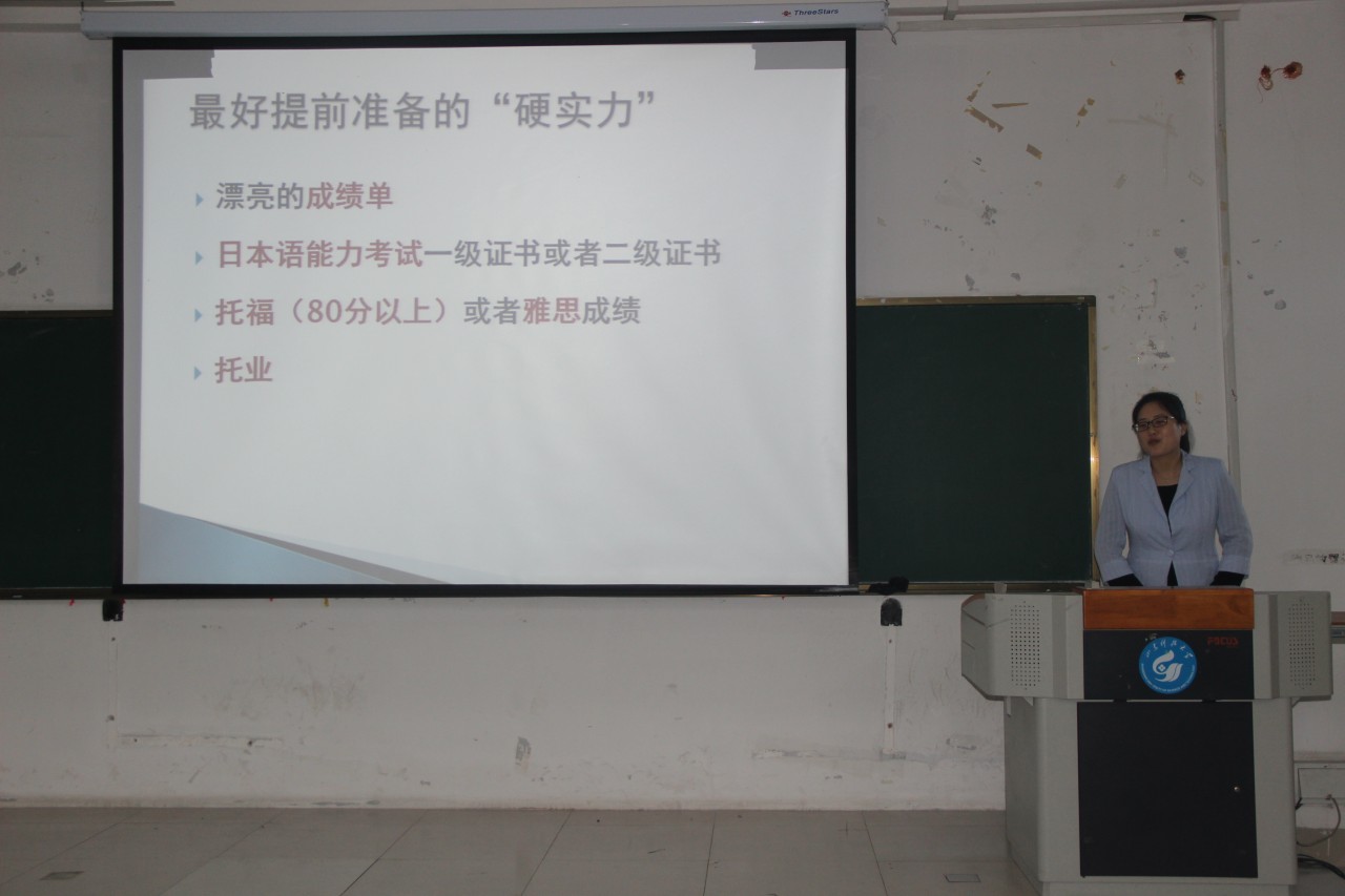 5月25日公司举办赴日留学经验交流会。本次交流会主讲为公司2010级员工,现为新潟大学现代社会文化研究所博士一年级的崔旭。本次交流会由日语系主任李守波主持。 崔旭和同学们分享了自己的留学经验,从贴近生活的物价、医疗、安全、打工等方面分享了在日本职工活的苦与乐。她还给同学们详细地介绍了申请留学的流程和相关注意事项,并就如何写申请邮件给现场同学们进行了细致的介绍。(通讯员:徐颖 秦冬梅 田静)