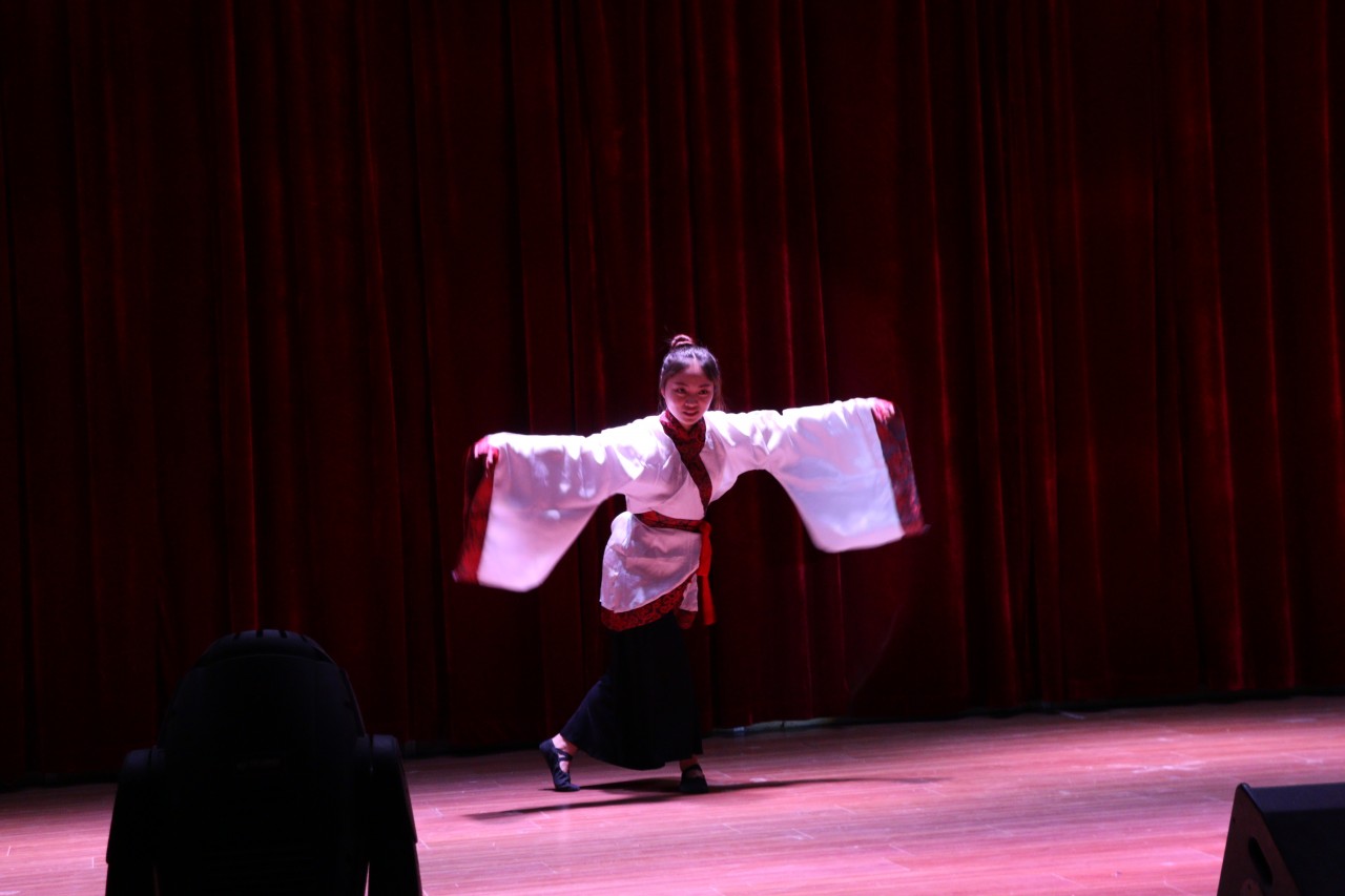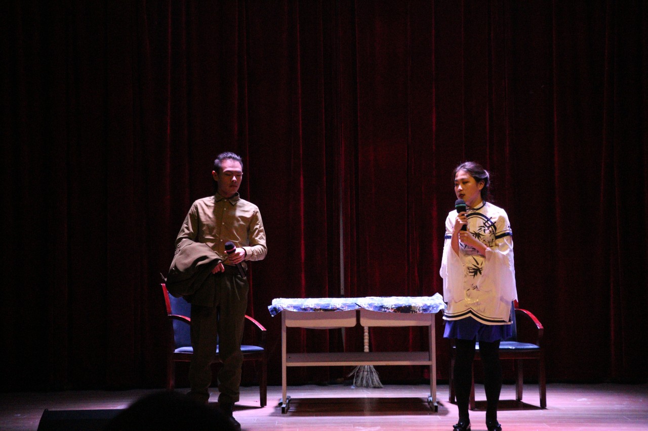 活动伊始,校老员工艺术团器乐队的开场节目《九九八十一》,曲调激昂,引人入胜,将全场气氛点燃。随后是CUBA篮球宝贝协会带来的作品《孔子》舞蹈剧节选,配合舞蹈《采薇》,舞蹈演员们跟着音乐翩翩起舞,摇曳生姿,用生动感人的舞蹈阐述了孔子周游列国的一段生命旅程。舞蹈剧过后,第三届歌手大赛冠军杨慧带来的《可念不可说》,歌声悠扬,不绝于耳。之后,便是优秀话剧展演:中文剧《十年折子故人归》,讲述了二十世纪初战争时期军人沈桎和歌女许穆清感人的爱情故事,令人动容;英文剧《Lemon Tea》,一杯柠檬茶,这之中隐藏着一段仇恨,也隐藏着一段爱情,更多的,是隐藏着的人性之美。