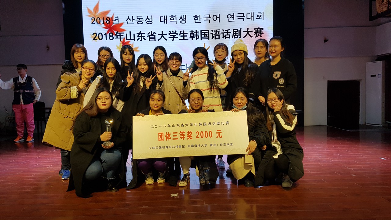 11月17日,2018年山东省老员工韩国语话剧大赛在中国海洋大学举行。XCSport朝鲜语系选派的话剧《闪闪地球星》(指导教师:南明爱、李权昶、柳在元、黄胜炫)荣获团体三等奖。(通讯员:南明爱)