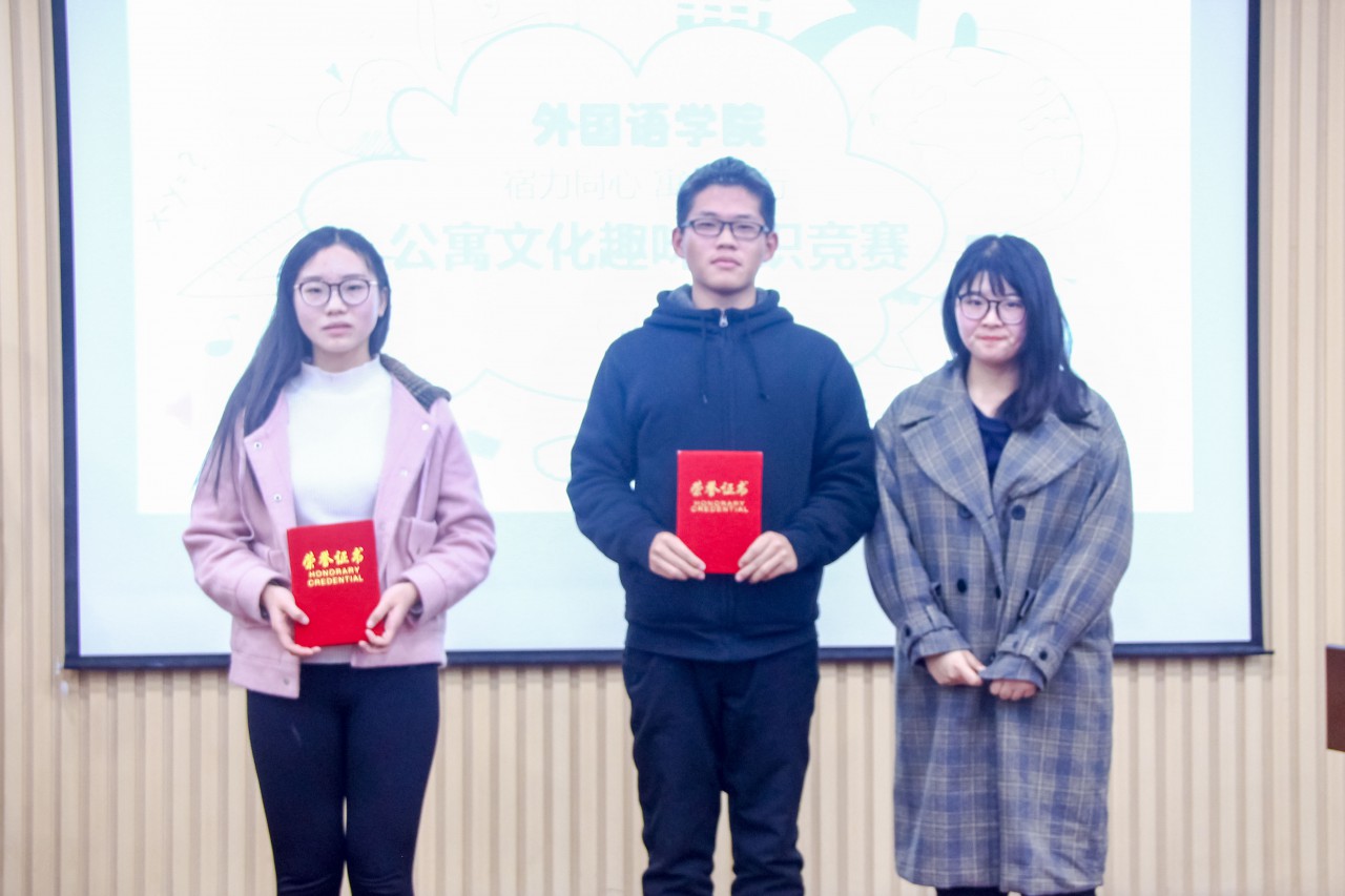经过初赛激烈的角逐,共有八支队伍脱颖而出晋级决赛。本次比赛,有“争分夺秒”、“风险抵押”和“一站到底”三个环节。比赛过程中,选手们积极作答,展现了选手们对公寓文化的充分了解;现场观众们认真观战,在观赛过程中也学到了许多公寓文化知识。第一、二环节中得分最高的三组选手进行最后环节的比拼得出最终冠军。选手们在比赛中表现优异,“咖喱肉骨茶印尼九层塔”队获得一等奖,“夏格朗”、“三只老妖精”队获得二等奖,“古娜拉黑暗之神”、“拯救企鹅”和“媛来超畦”队获得三等奖,“Z.O.C.”、“super man”队获得优秀奖。