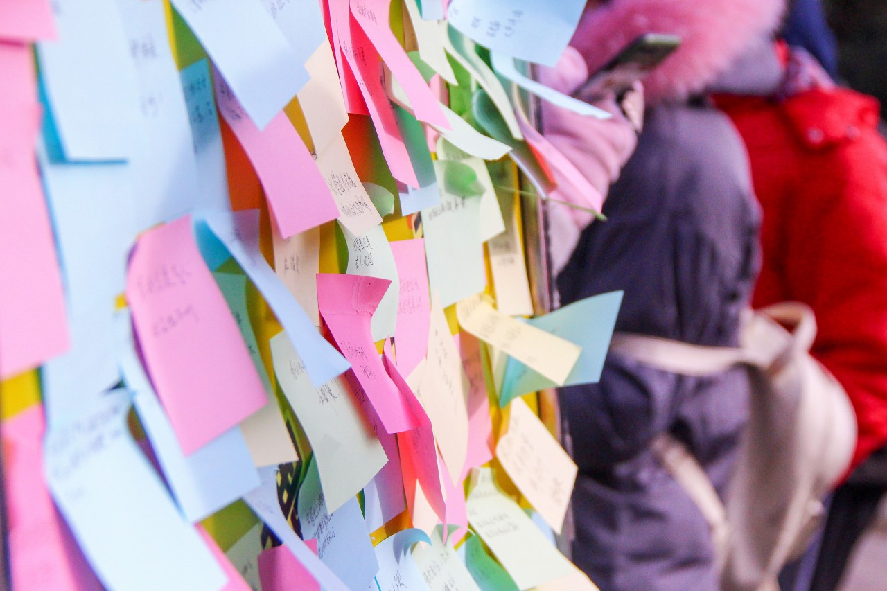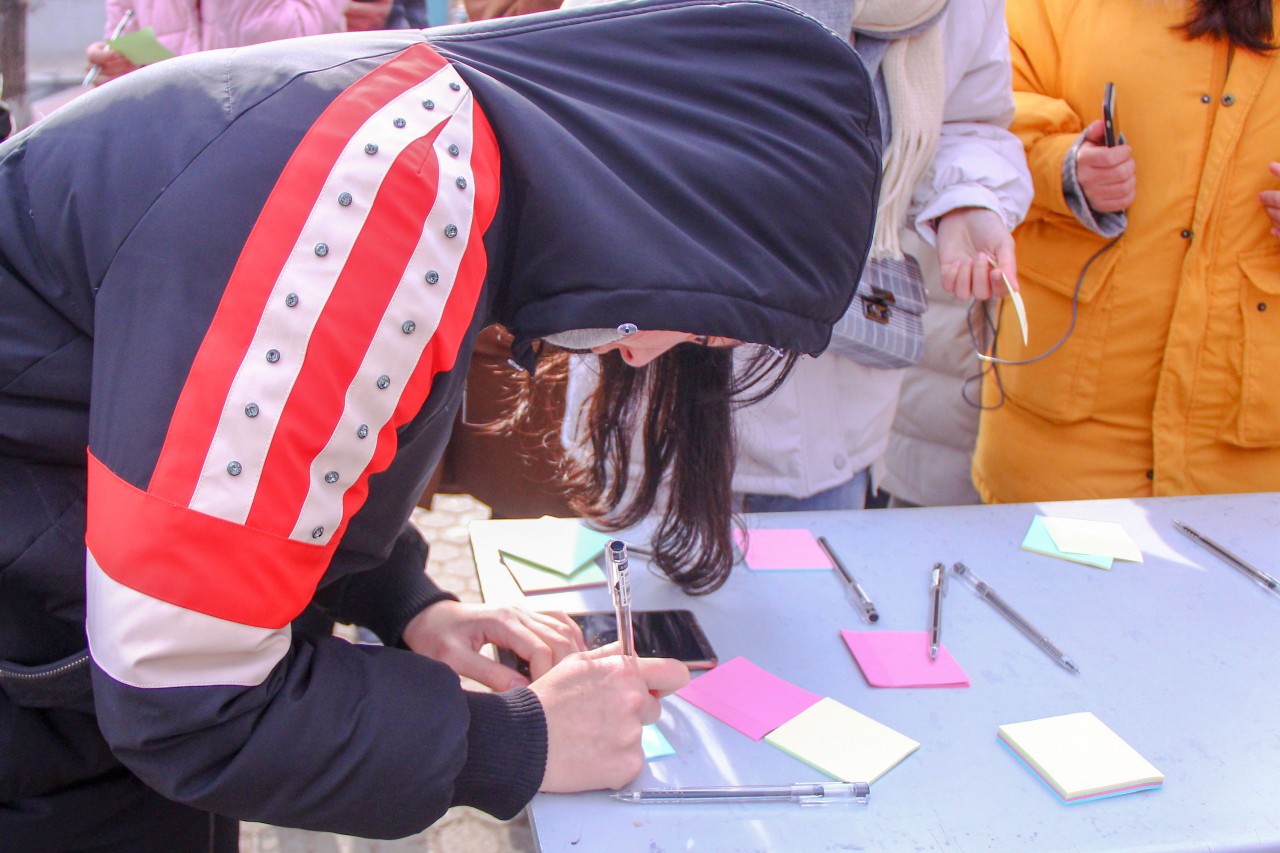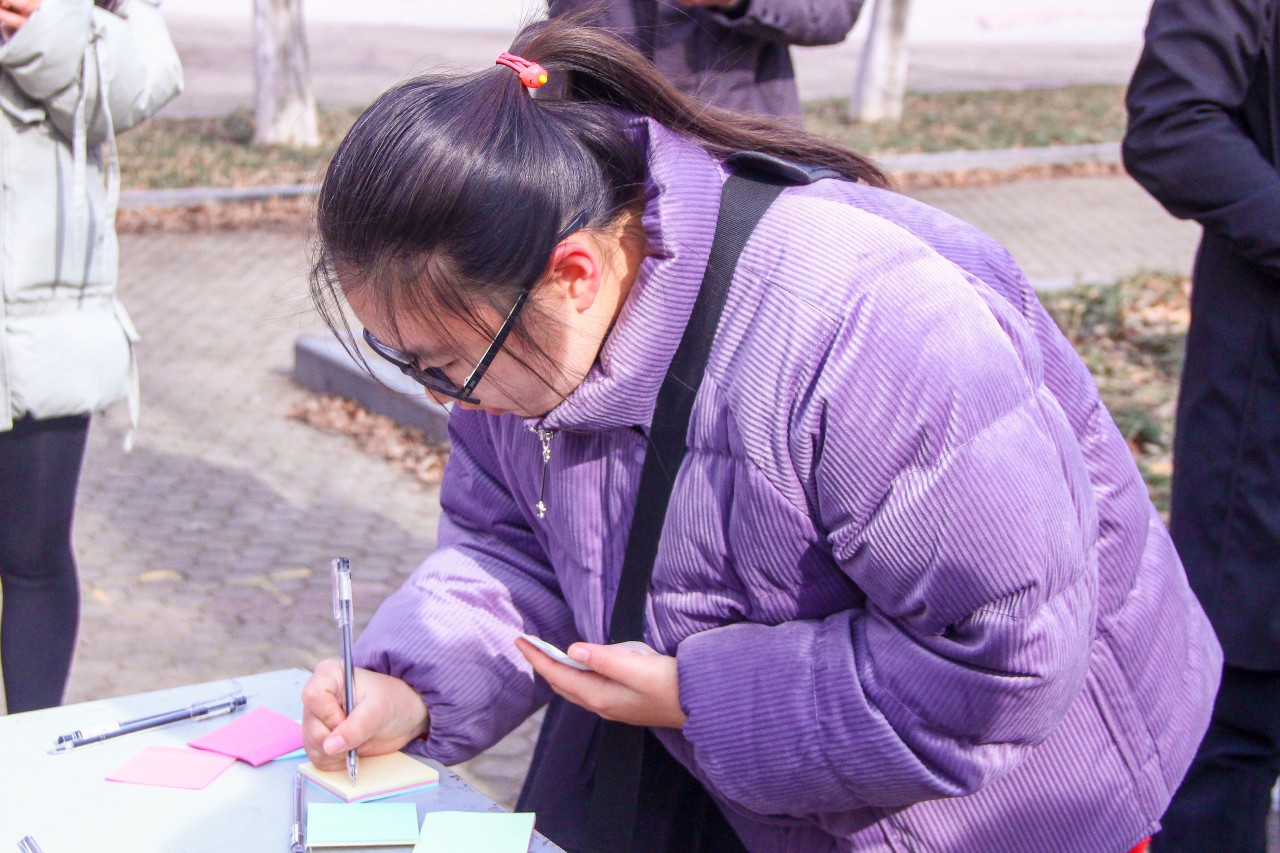 活动现场,工作人员指挥有序,同学们冒着凛冽的冬风仍积极前来参加,写下一句句关于校园不文明现象的吐槽和感触。左右两旁的展板上贴满了五颜六色的便签纸,上面不乏有对乱扔垃圾、乱倒泡面、随地吐痰、破坏公物等不文明现象的吐槽,吐槽的地点小到宿舍、教室,大到食堂、图书馆。这不仅引起了同学们的反思,也从侧面彰显了同学们对改正不文明行为的重视及决心。