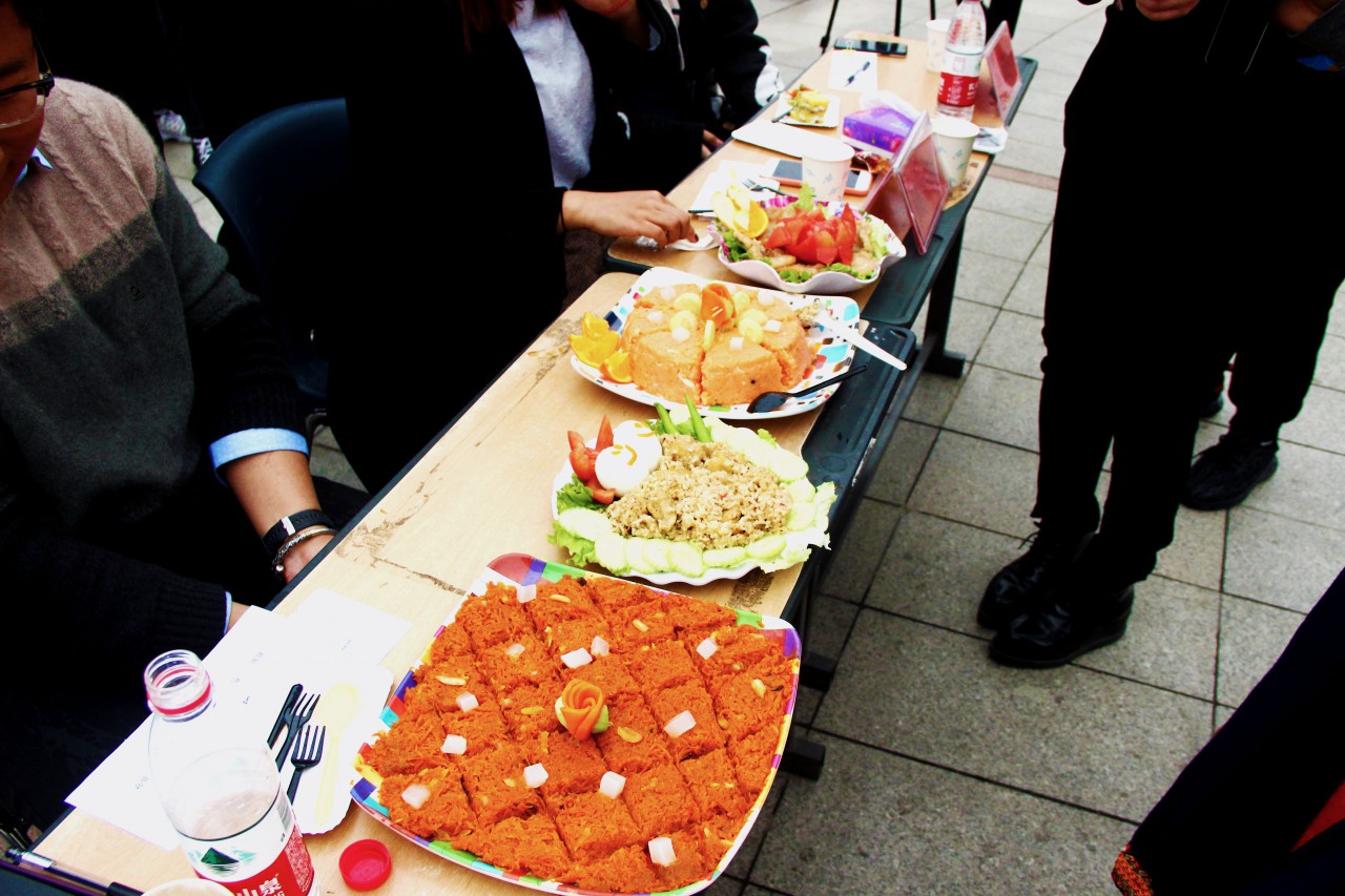 为锻炼员工的动手能力和实践能力,加强员工对厨艺的了解,同时巩固对外语文化的认识,4月13日,由XC体育党委宣传部、校团委、教务处、员工工作处和XCSport共同主办,XCSport员工会承办的“第二十二届外语文化艺术节‘觅食全食美·展异域风情’异域美食厨艺大赛”在繁星广场成功举办。由网络信息中心的胡晓亮老师、经济管理公司员工会办公室副主任李美琪、XCSport员工会主席滕一鸣、副主席于鹏伟、王晓阳和担任本次大赛的评委。 比赛分为两个环节,第一环节是“舌尖上的美食”。各组选手带着自己提前准备好的丰富食材,准备大展身手。当季水果、新鲜蔬菜、油盐酱醋、辣椒面、甚至老干妈等制作材料一应俱全,有的组还用紫薯和山药代替面食,新颖别致。比赛开始后,选手们带着卫生手套,将切好的材料悉心摆放成小金鱼、花朵等各种惊艳的造型,大家分工明确、有条不紊地制作着美食。接下来的第二环节是“舌尖上的文化”。每组选手派出一位代表向评委介绍自己的作品。菜品有“越南三宝”之一—“越南春卷”、韩国的流行美食“打糕拉面”、日本樱花寿司、美国三明治、DIY奶油蛋糕、水果盒子等各种美食。留员工选手们还带来了杂蔬鸡肉炒饭,这道菜将斯里兰卡的炒饭、马来西亚的鸡肉和中国的各类杂蔬完美的结合在了一起,荤素搭配,营养丰富。选手们通过融合各种食材来展现文化的多样性和世界性,别出心裁。经过紧张激烈的美食大比拼后,比赛结果已见分晓。“124厨神战队”获得一等奖;“NO.1韩味小厨”和“番茄炒蛋队”获得二等奖;“Powerpuff Girls”、“啥都会队”、“钢铁女A”获得三等奖;“西红柿炒鸡蛋队”、“拯救企鹅队”、“简单队”、“Gold Hammer队”、“动物世界-232”和“一顿不落队”获得优秀奖。最后,胡晓亮老师对本次比赛进行了精彩的点评。 异域美食唤起了我们对青春生活的憧憬,烹饪文化唤起了我们对异国风情的热爱。本次比赛不仅为爱好厨艺的同学们提供了展示自己的舞台,同时也激发了同学们对外语文化的热爱。(通讯员:李昕慧 马子豪)
