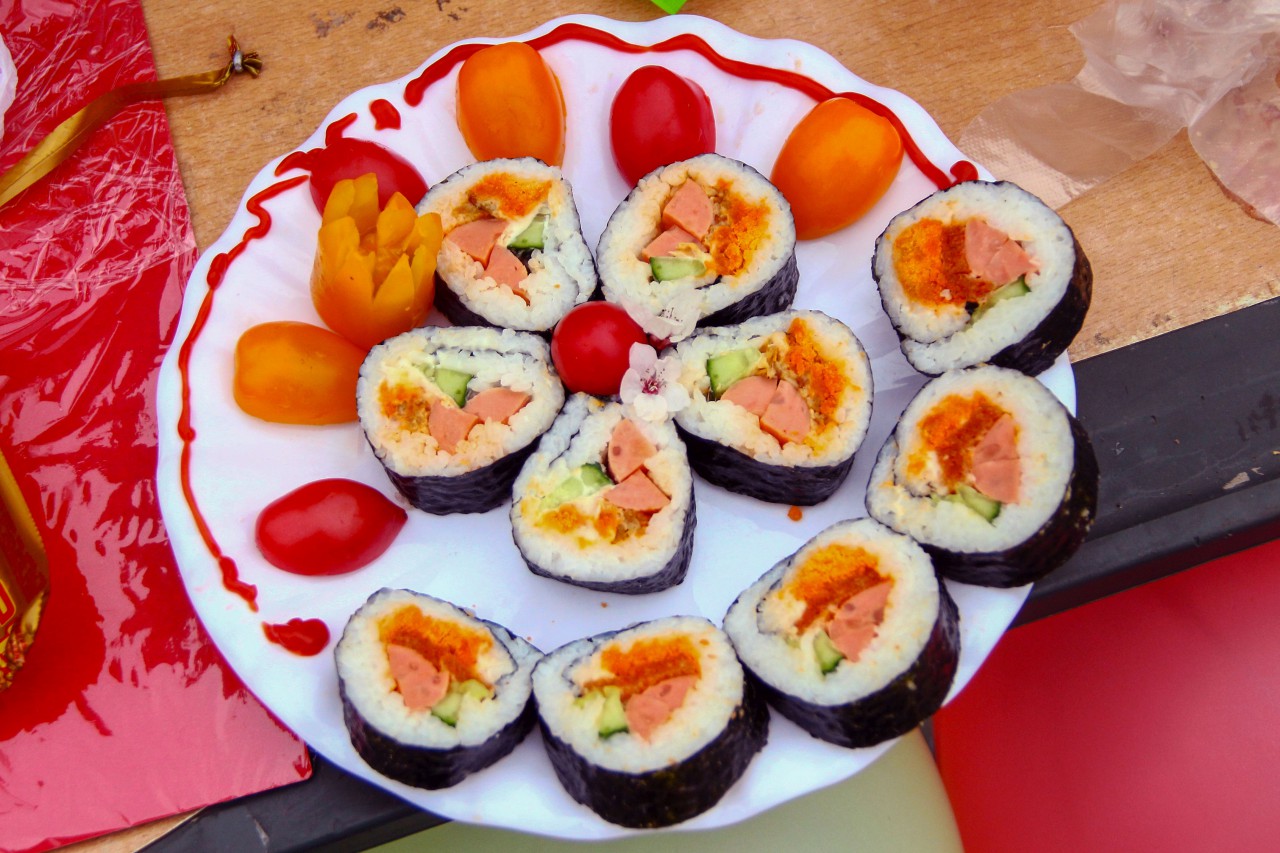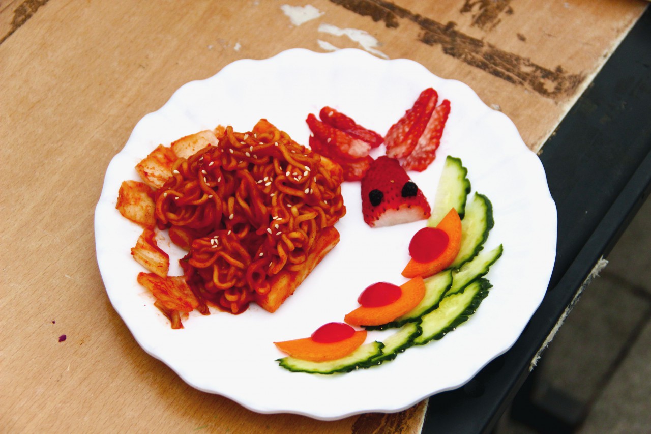 职工作品 拉面打糕 拉面年糕 水果盒子 越南春卷 紫菜包饭 美食制作中 评委试吃