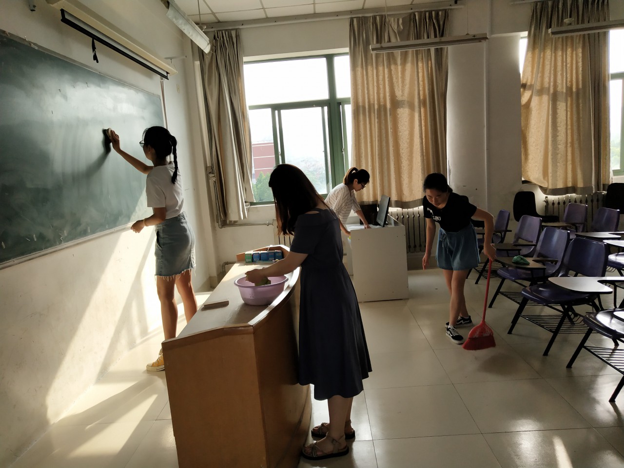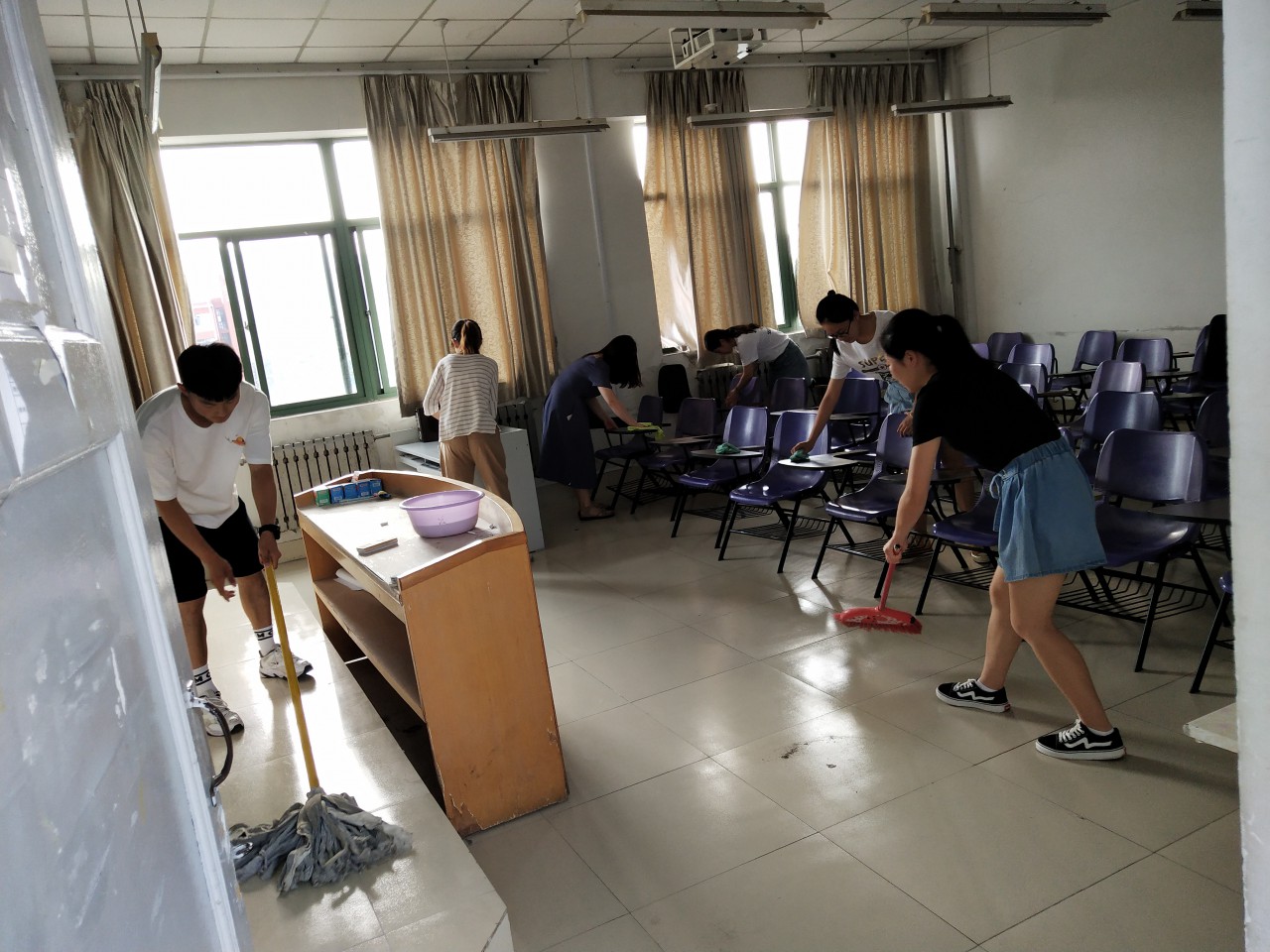 时光荏苒,他们已经在这里度过了充实、愉快的四年时光。毕业之际,他们一以贯之地以“科大发展 我在其中”的责任意识和担当精神,珍惜每一次为师生服务的机会。为了给师生营造干净、整洁的教学、学习环境,大家根据分工、争先恐后地完成各项清理工作。