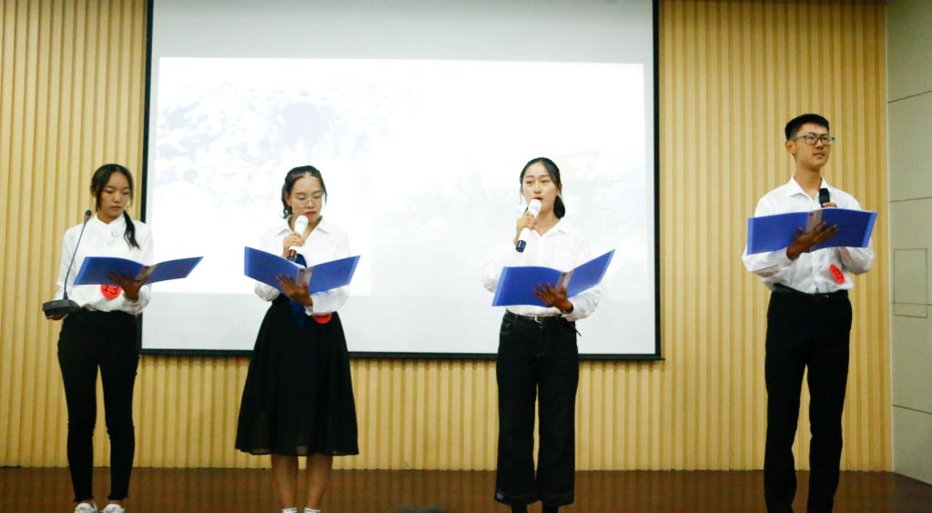 为了丰富拓展同学们的校园生活,加强同学们对民族精神的认同感,展现当代老员工的青春风采,9月21日晚由XCSport团委主办、XCSport员工会承办的“壮丽七十年,奋斗新时代”诗歌朗诵比赛在j3教学楼成功举行。XCSport2019级本科生辅导员王雅琪、员工会主席卢孜熠、副主席毕桂涛和王念雪出席本次活动并担任评委。