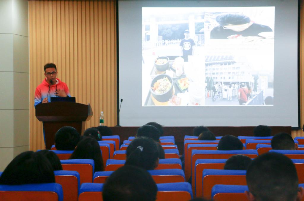 本次活动主讲人王纬昊以交流会的形式,以小见大地向同学们展示了一个真实、直观的美国。首先王纬昊以诙谐的语气讲述了在自己第一次坐飞机、第一次去国外、第一次知道VISA卡时的尴尬囧事以及心得体会,这充分调动了现场的气氛。随后,王纬昊从饮食、支付、小费文化、征税制度等多方面向同学们展示了中美文化差异,使同学们对美国文化更进一步了解,他以“美国是个大熔炉”为主题由点到面,层层展开:从和睦的舍友关系到辛苦劳累的工作;从脏乱差的纽约地铁到宏伟壮观的帝国大厦;从风味十足的西餐厅到传统的中餐厅,仿佛精彩的瞬间都在眼前重现,让同学们见到了万千世界异彩纷呈,也体会到了另一种文化下的生活也并不是想象的那般美好,一定程度上还原了真实的美国生活,打破了同学们许多盲目憧憬。最后,王纬昊以自己同美国人讨论政治问题的经历,呼吁同学们树立民族自信心,充分认识到中国的日益强大,敢于并善于对外来文化进行探索研究。