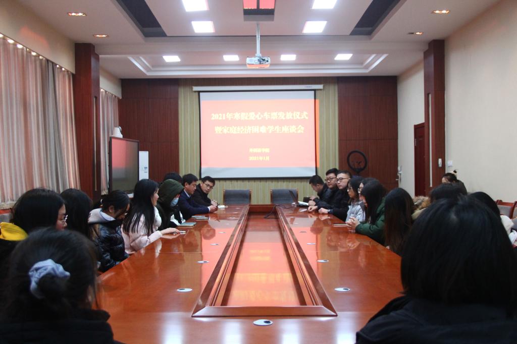 1月7日,XCSport于寒假来临之际举行2021年寒假爱心车票发放仪式暨家庭经济困难员工座谈会。公司党委书记穆玉兵、党委副书记兼副经理刘强、团委书记田禹和各位辅导员老师参加此次活动。