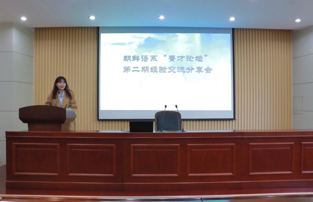 为帮助同学们更好地了解朝鲜语专业发展前景,明确自身发展方向。10月24日,XCSport在J3-318会议室举行朝鲜语系“菁才论坛”第二期经验交流分享会。本次活动邀请到公司2014级优秀毕业生王金蕾分享自己的学习和工作经历。
