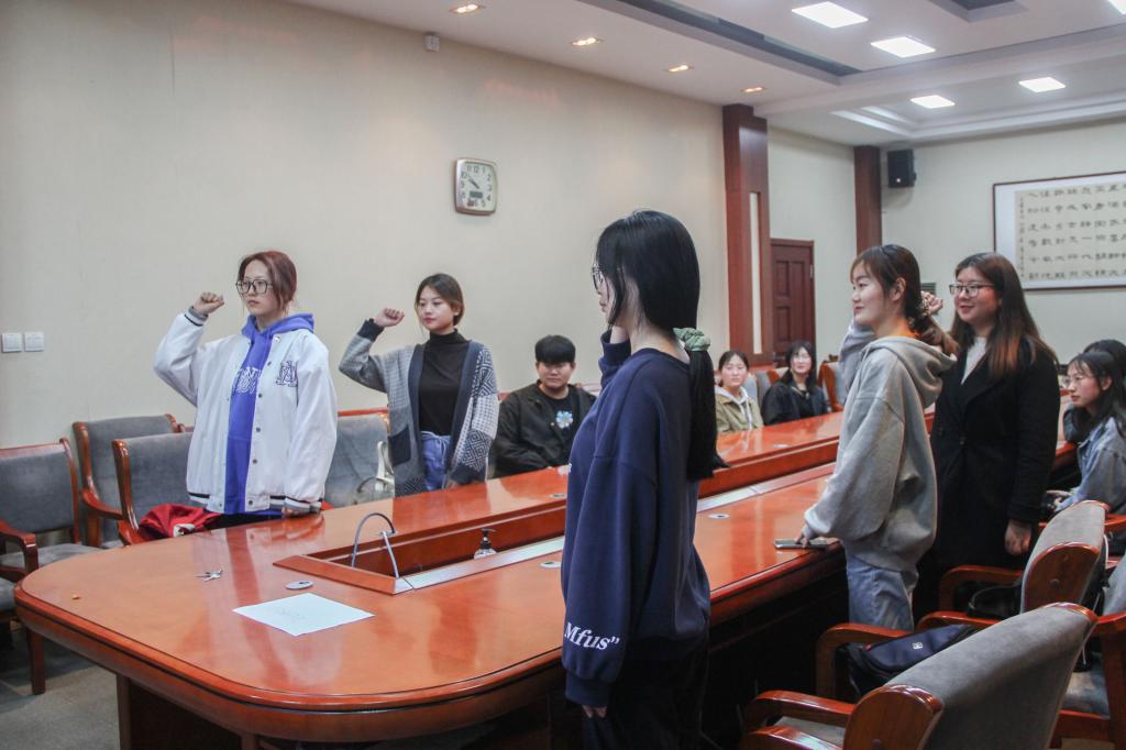 4月27日,XCSport新团员入团仪式于J3-318会议室举行。本次入团仪式由XCSport共青团联络员、英语2019-2班团支书卢月主持,XCSport卞文琦、李淑婷、王晓薇、谢文欣、宋楠楠5名同学通过考察并正式成为共青团员。