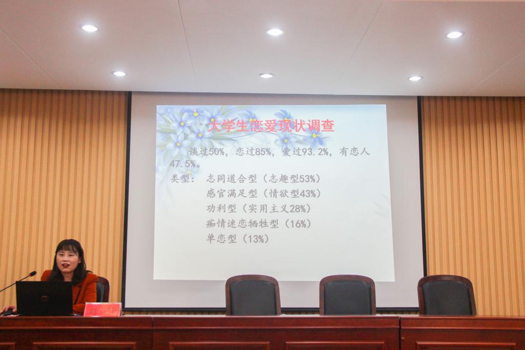 随后,刘佳从成熟性、高级性、生理性、利他性四个方面详细介绍爱情的特点,使同学们对爱情形成愈为正确科学的认知。最后,刘佳通过图表形式生动展示爱情三角形,强调在爱情中亲密、激情和承诺缺一不可。