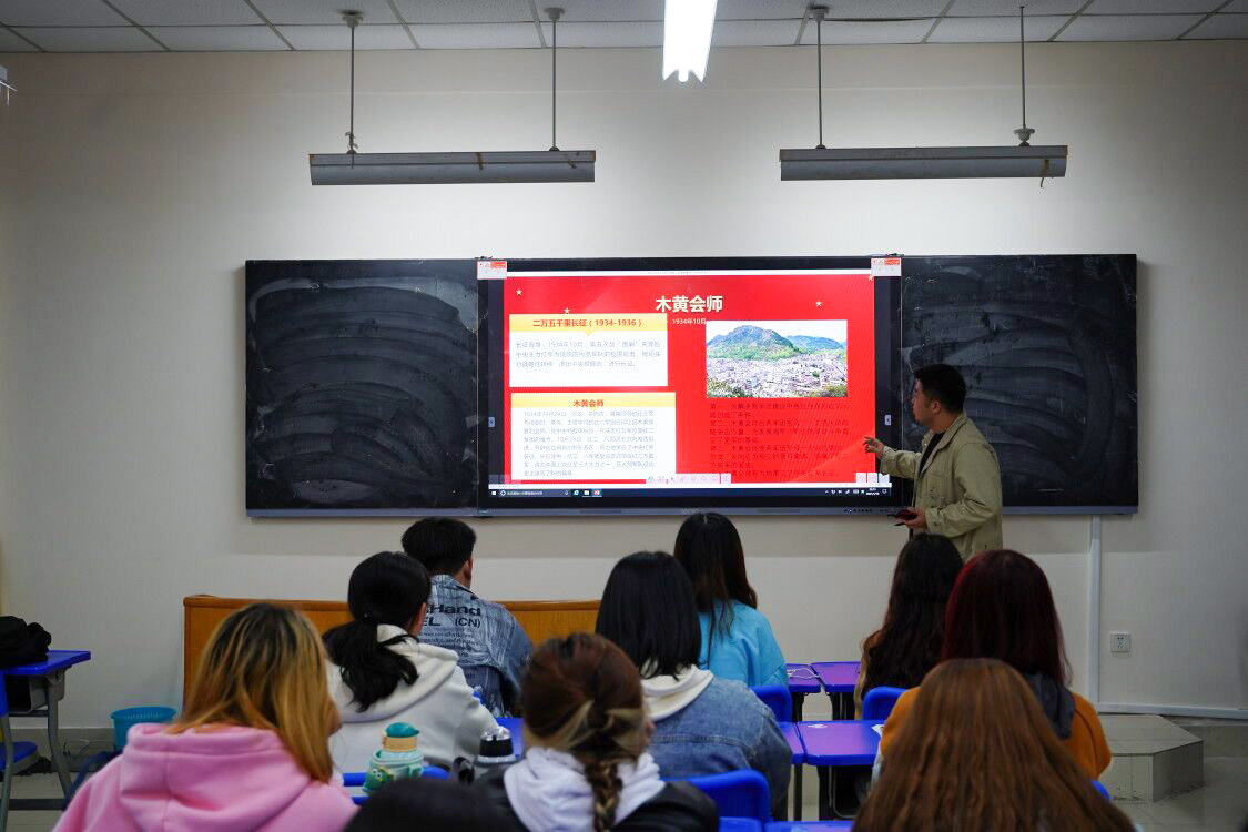 富笛珂向同学们介绍民族英雄杜德林为抗战做出的伟大贡献。宋雨讲述沂蒙人民为中华民族的独立和人民解放所立下的不朽功勋,使同学们在历史缩影中加深对中国共产党百年征程的认识。刘杨涵玉以血与火交织的历史为切入点,激励同学们克难奋进,自强不息。王小琳介绍中共青岛党史纪念馆。她提到,中共青岛党史纪念馆是青岛早期党组织传播马列主义、撒播革命火种、领导工人运动的重要阵地。