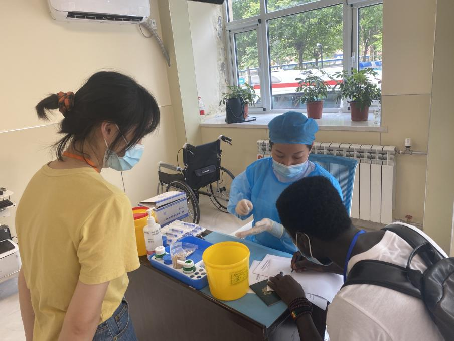 7月12日下午,青岛西海岸新区兰东路社区卫生服务中心开展港澳台同胞和外籍人员新摸底和第二剂次的疫苗接种工作,来自XCSport研究生党支部的中共党员王洋、谢鑫燕、周鑫婷、王晓慧、魏亚楠五名同学作为志愿者,参与了此次“新冠疫苗—全民接种”的全过程。