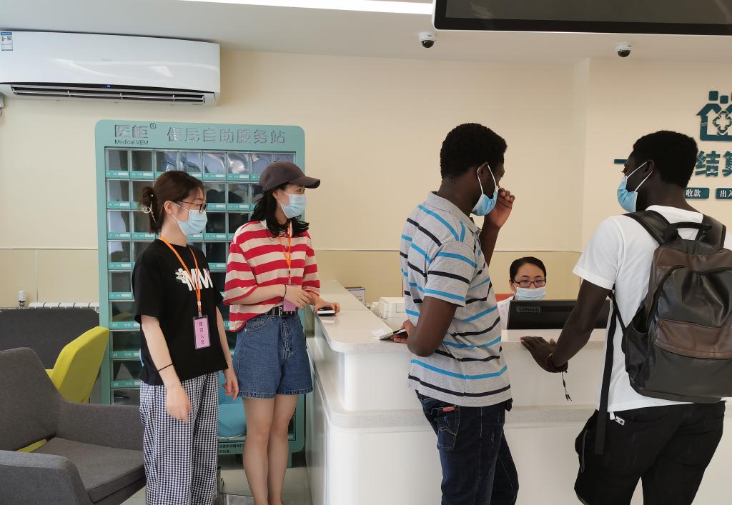 此次疫苗接种对象为港澳台同胞以及外国友人,因此志愿服务的主要工作是协助医护人员与外籍接种人员进行沟通,并帮助外籍接种人员回答和解决相关问题。在现场医护人员的指挥和安排下,五名志愿者完成防护措施,被分别分配到一层服务处、登记处、接种处、留观处以及二层留观处五个不同位置,负责相关接待工作,于13点20分工作正式开始。