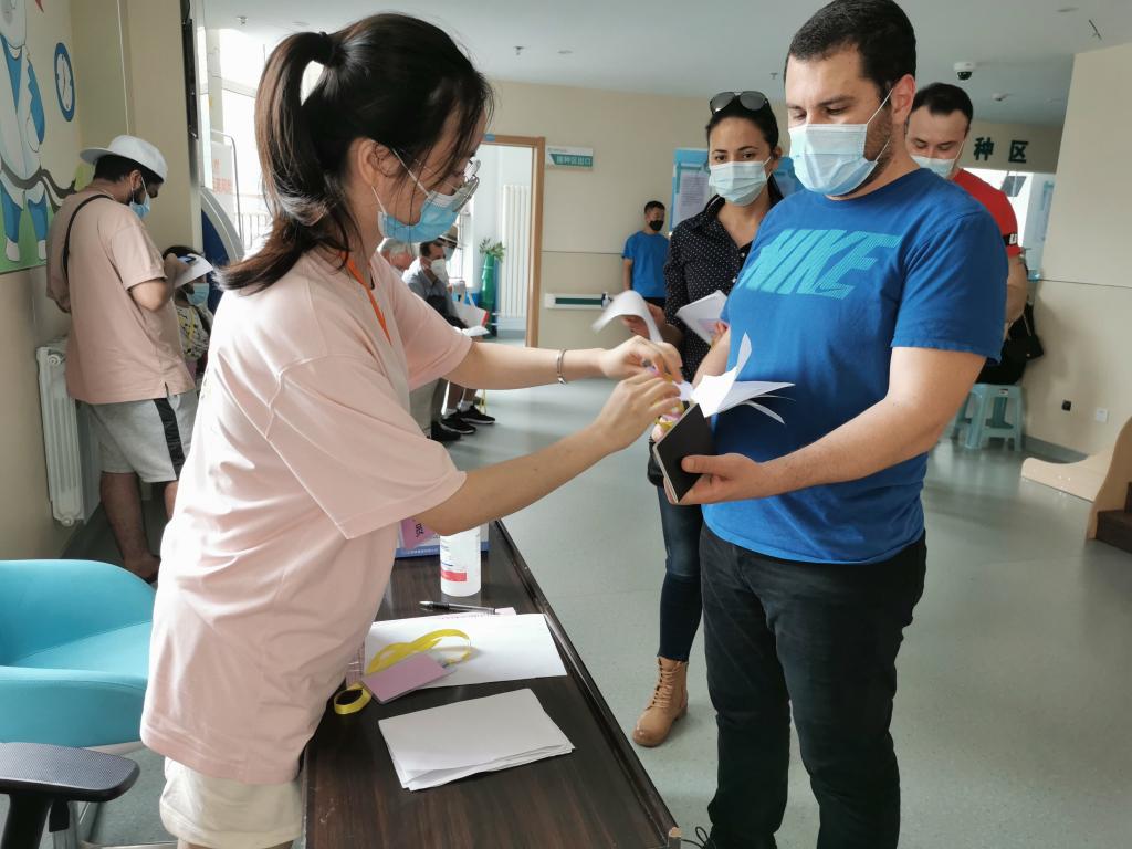 在五个小时的志愿服务时间里,志愿者们共接待有两百余位外籍接种者,耐心负责地解答了大家诸如接种流程、需要提供何种证件、第二针的接种时间等各种问题,收获了外籍接种者、医护人员、现场工作人员的多方赞誉。