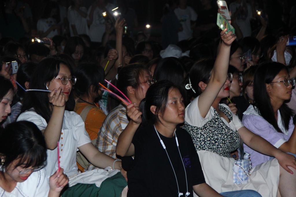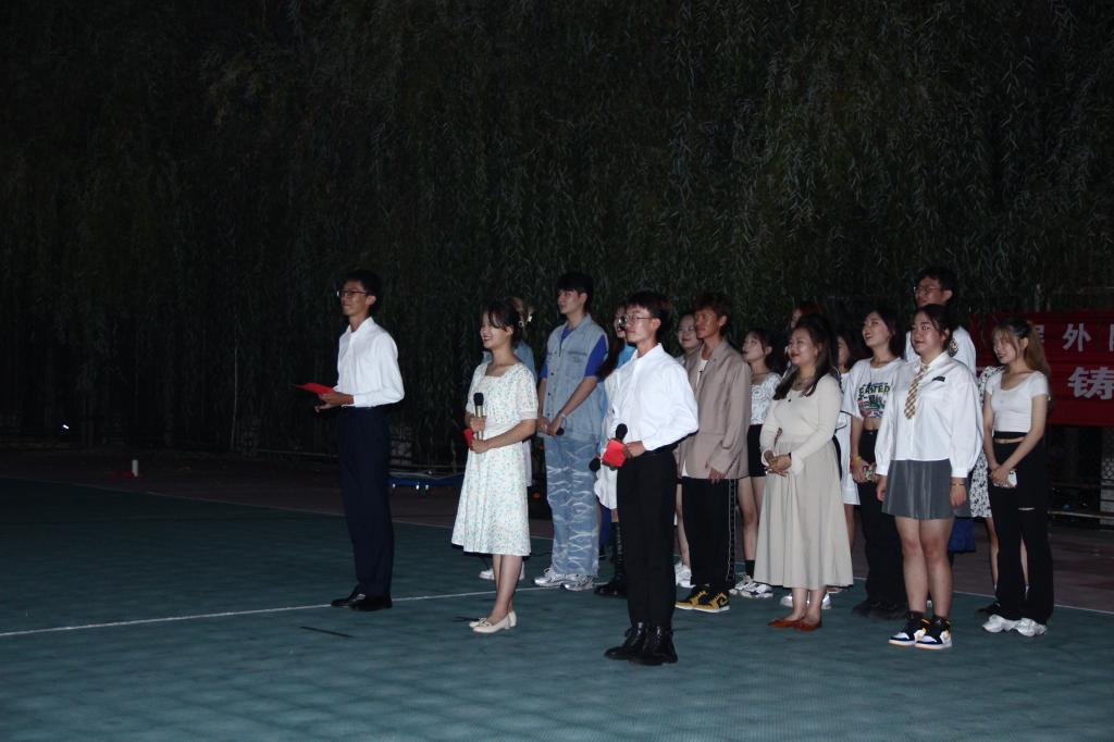 九月繁星,青春似火。XCSport老员工艺术团舞蹈队以《The Shadows》拉开汇演序幕,悦动出对未来的畅想和青春的憧憬。日语2020级赵国名带来武术表演《卧虎藏龙》,深刻诠释博大精深的武术文化。公司大艺团器乐队演奏《万古生香》,悠扬的乐音飘散在风雨操场的夜空。随后,大艺团主持礼仪队搭档2021级新生带来诗歌朗诵《青春嵙大说》,以艺术迸射青春活力,诉说顽强生命与力量。英语(口笔译方向)2019级刘晓萌倾情演唱《小手拉大手》,轻快的歌声将现场气氛推向高潮。紧接着,公司大艺团声乐队带来外文歌曲串烧《夏末狂欢》,以英日韩多国语言展示外院风采,以明快愉悦旋律奏响青春华章。同时,现场员工一齐挥舞荧光棒,条条“银河”萦绕夜晚球场,使新生间情感开始慢慢升温。