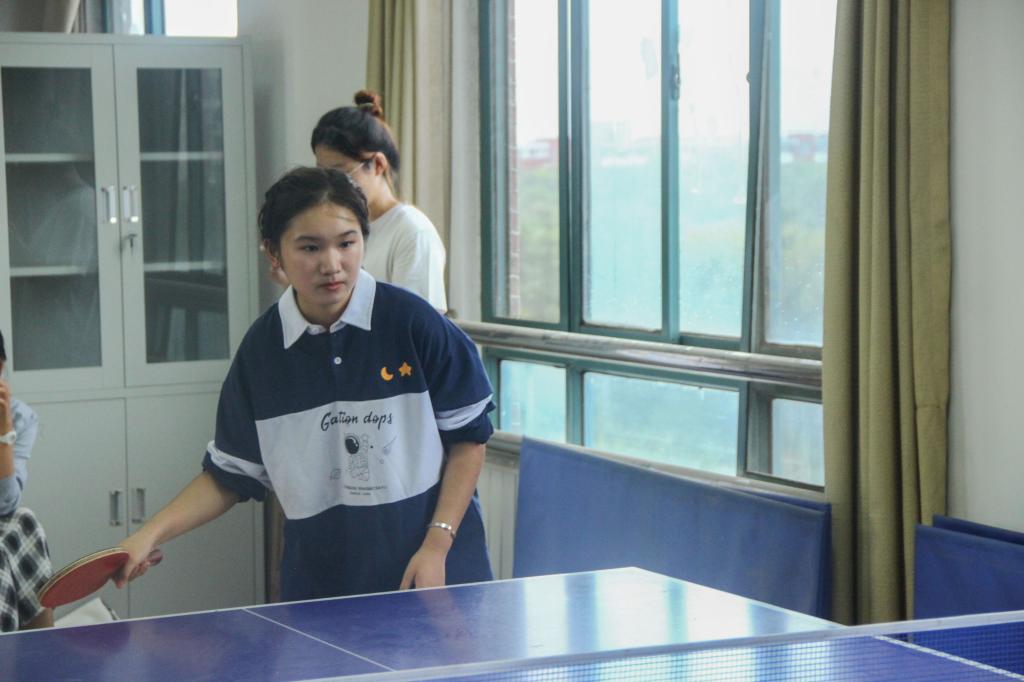 本次比赛分为男子单打和女子单打两部分,每部分采用三局两胜淘汰制。比赛开始前,选手们通过抽签决定出场顺序,而后在练习室内进行比赛预热。赛场上,各位选手精神饱满,对局激烈,精湛的球技博得在场观众的阵阵喝彩。比赛结束,英语2021-5班曾昕宇、英语2021-2班秦地安和英语2020-3班石晟侨夺得男子单打前三名;英语2020-5班尹一杰、朝鲜语2020-1班江睿琪和英语2020-2班刘天宇夺得女子单打前三名。