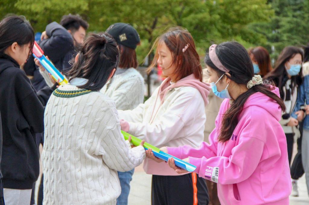 XCSport2021级研究生共分为8个队伍参加此次趣味运动会。比赛开始前,设置“一马当先”和“踢毽子活动”作为热身项目,为研究生趣味运动会拉开序幕。比赛共分为“勇往直前”“气球大战”“爱的抱抱”3个项目,活动内容丰富,创意新颖,激发研究生的活力,增进新生间的情谊。比赛中场,趣味运动会设置班级才艺展示环节,节目精彩纷呈,形式各色多样,展现出外语学子强健的体魄、饱满的热情和高昂的斗志。