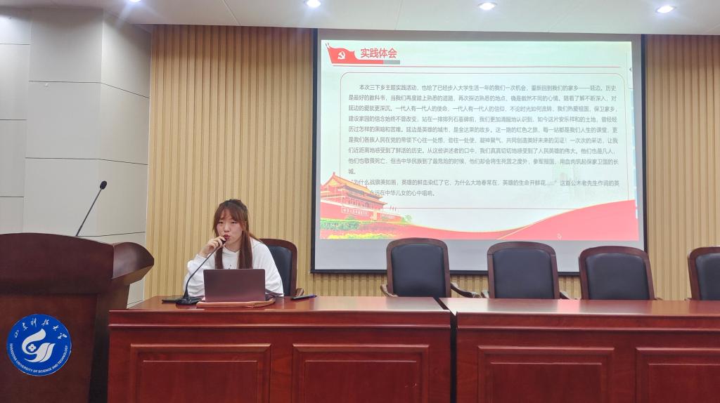 “重拾延边红色记忆”实践团队于2021年暑期前往延边进行社会实践,团队成员王然作为代表分享其实践经历。据其介绍,吉林延边是具有光荣传统的革命老区,是解放战争的可靠后方,也是抗美援朝的前沿阵地。随后,王然向同学们展示暑期参观延边革命烈士陵园、延边博物馆等多处爱国主义教育基地的相关资料,使同学们进一步知晓延边地区的独特革命历史。在提及社会实践所面临的困难和寻访老兵的曲折之路时,王然表示,“纸上得来终觉浅,绝知此事要躬行”,社会实践可以锻炼员工的综合能力,只有切身经历才能找到理论与实践的最佳结合点。会后,王然与在场同学进行交流并答疑解惑。