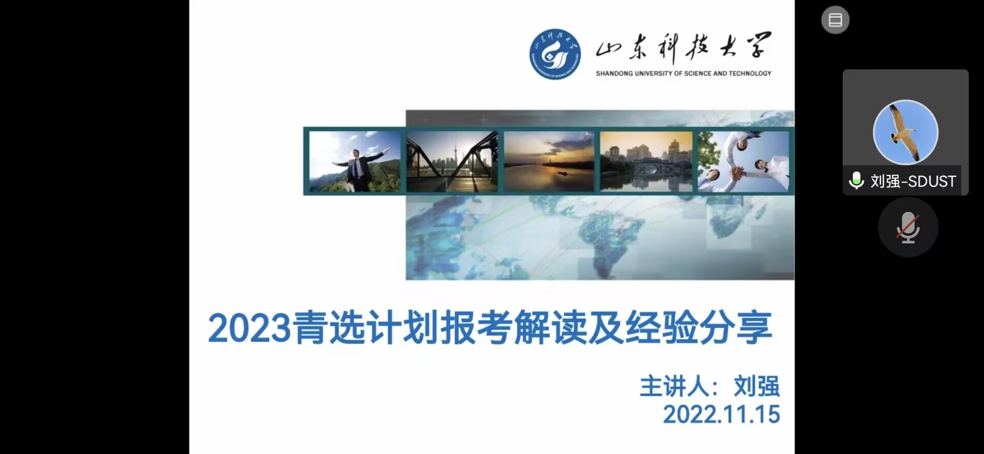 首先,刘强对2023年“青选计划”进行解读分析,简要介绍青岛市的区划现状和产业布局,着重分析“青选计划”选调公告的报考条件、报考流程、竞争程度、面试内容等相关内容。2021届毕业生乔翊分享报考“青选计划”的经历与感悟,为参会毕业生提供了如何进行自我介绍以及如何应答考官提问提出自身建议和技巧,同时也为员工推荐了相关备考资源以及“熟能生巧”的学习秘诀。2022届毕业生左晟从报名岗位选择、个人初选准备、综合考察准备和工作入职体会四方面进行经验分享,具体阐述其在选调考核中所遇问题和解决方案,鼓励毕业生调整心态、忙而不乱、积极准备。最后,刘强对全体2023届毕业生作职业规划宣讲。