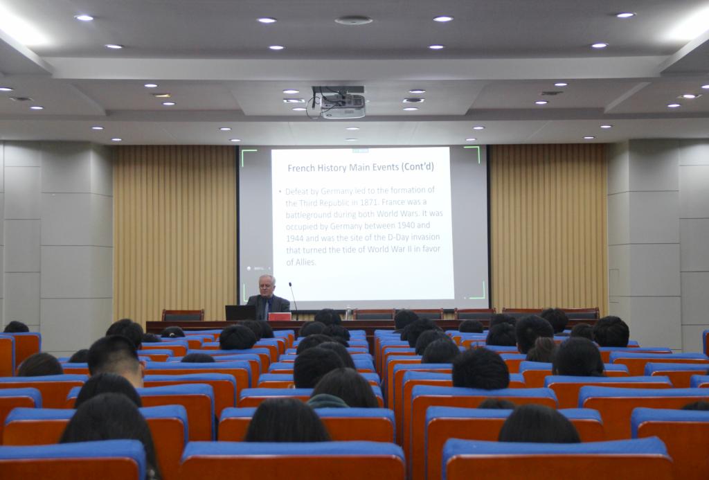 本次“视·界”文化分享交流会上,Igor以自身的人生经历为出发点,娓娓道出对法国文化的深厚情谊。首先,Igor通过生动有趣的图片与视频,从衣食住行等方面向同学们介绍法国的各类见闻和风土人情。同时,他向同学们普及国际交流中的注意事项,进一步阐明礼仪规范的重要价值。