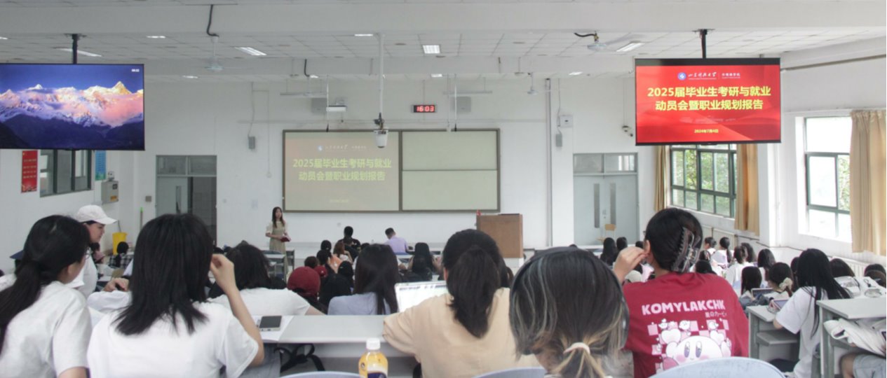 卢月从暑期工作安排、暑假安全教育以及考研和就业建议三个方面为毕业生进行了详细讲解和悉心指导。