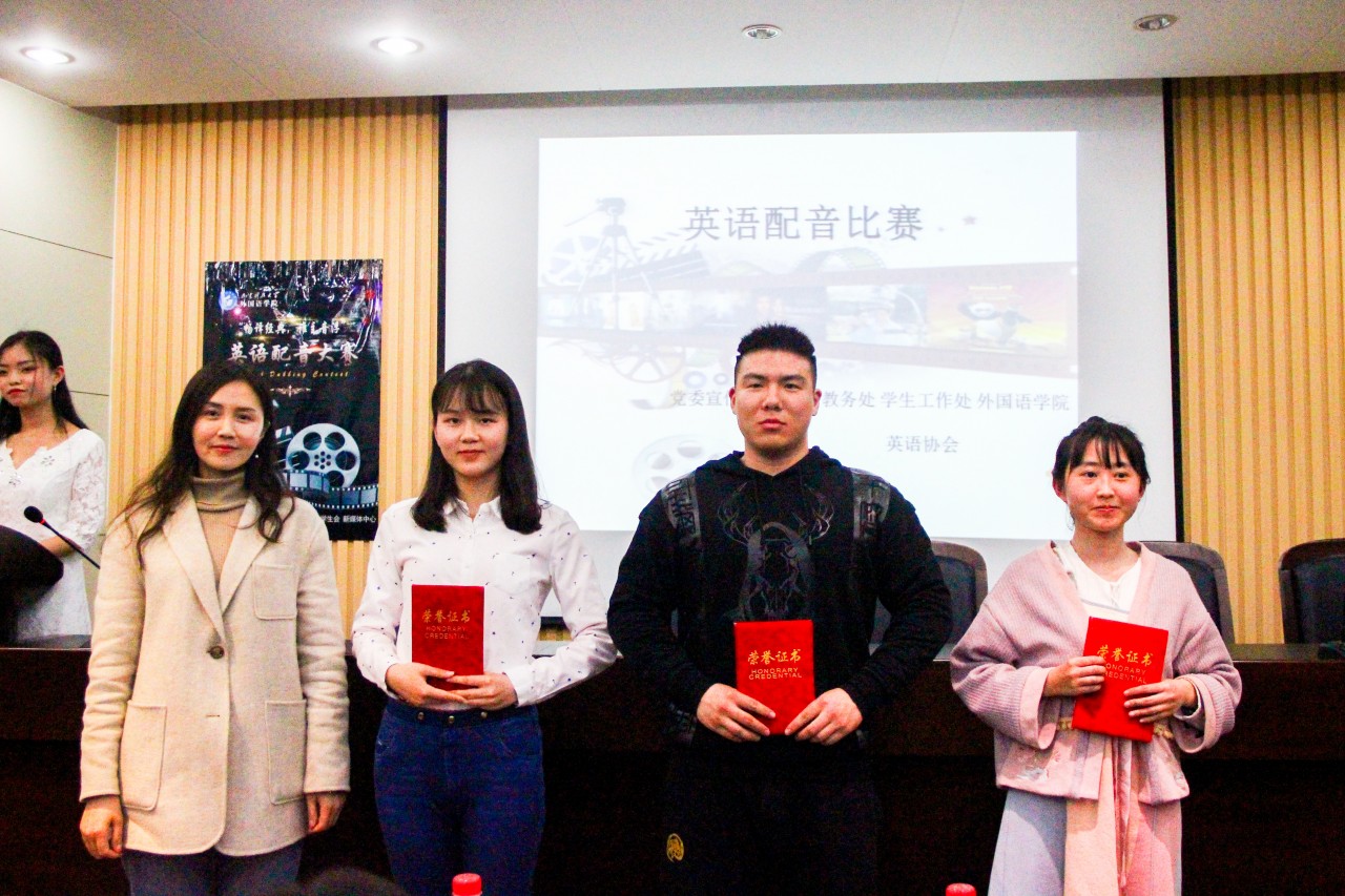 比赛分为两个环节。第一环节为有备配音,选手们依次上台对自选片段进行配音,展示自己刻苦训练的结果;第二环节为定题配音,选手们对选定片段进行配音,考验选手对于英语的掌控能力。此次参赛的队伍个个实力强劲,所配音的桥段也是囊括了各个种类的美剧、电影,其中包括了我们熟悉的美剧《老友记》、《权力的游戏》、《生活大爆炸》等,也有留名青史的经典《窈窕淑女》、《泰坦尼克号》等,甚至还有《逗鸟外传》等卡通动画电影。选手们深入角色,尽展流利口语,拿捏语调变化,使得观众们如同置身于一场视听盛宴,现场掌声迭起。最终经过激烈角逐,Super Rabbit组合获得一等奖,美女与野兽组合、龙雨飞和陈雨欣组合、Beauty and Beast组合获得二等奖,神偷奶盖组合、老干部们组合、叶檀组合以及Pitch Perfect组合获得三等奖。(通讯员:张文萧 陈兆广)