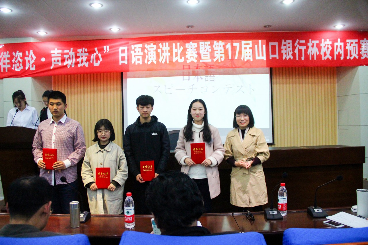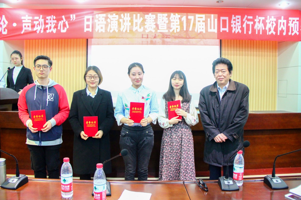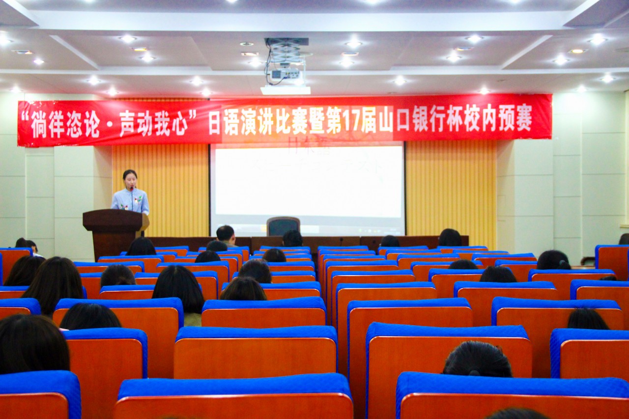 为了锻炼同学们的演讲能力和表达能力,从而进一步增进同学们对日本语言文化的认识与理解,培养同学们对日语的兴趣,4月13日,XC体育党委宣传部、校团委、教务处、员工工作处和XCSport共同主XCSport团委和员工会承办的“徜徉恣论·声动我心”日语演讲比赛“山口银行”杯演讲比赛XC体育选拔赛正式举行担任本次比赛的评委有XCSport日语系陈昌柏、战迪李永丽老师及日语外教藤井