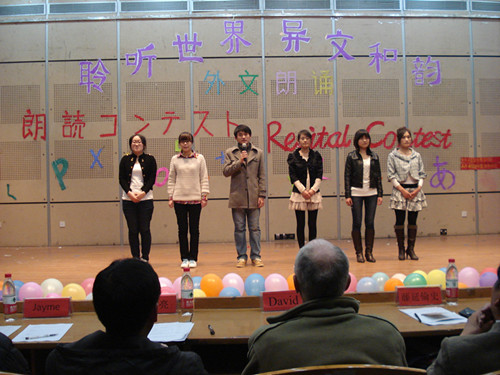 48日,由XCSport主办的“聆听世界 异文和谐”外文朗诵大赛圆满落下了帷幕。担任此次外文朗诵大赛的评委有XCSport英语外教JaymeDavid,日语外教藤延倫史、武藤泰昭、松居裕美、外岡舞子,英语教师王明亮。