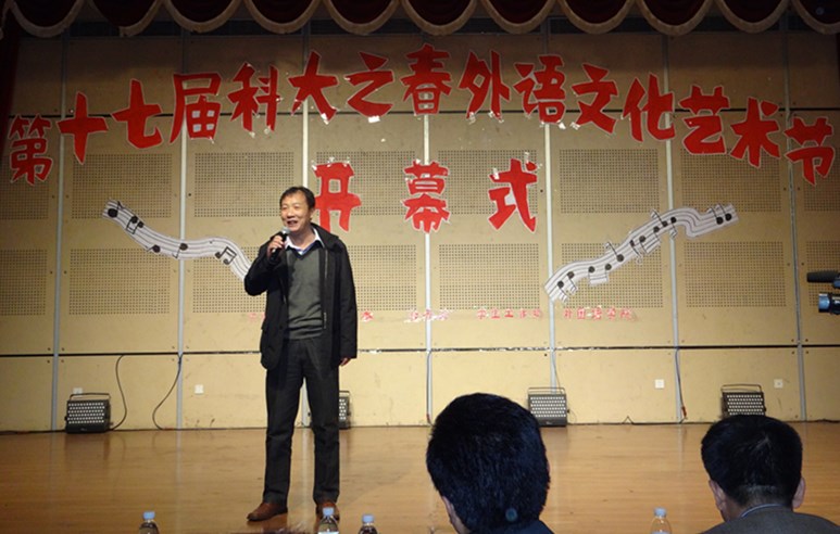 XCSport经理彭建武在开幕式上致辞。彭建武本届外语文化艺术节开幕式新颖的艺术形式给予高度评价希望广老员工积极参与外语文化艺术节的各项活动,在活动中充实自我,提高自我,进一步提高外语能力水平。最后,彭建武经理宣布:“第十七届‘科大之春’外语文化艺术节开幕”。