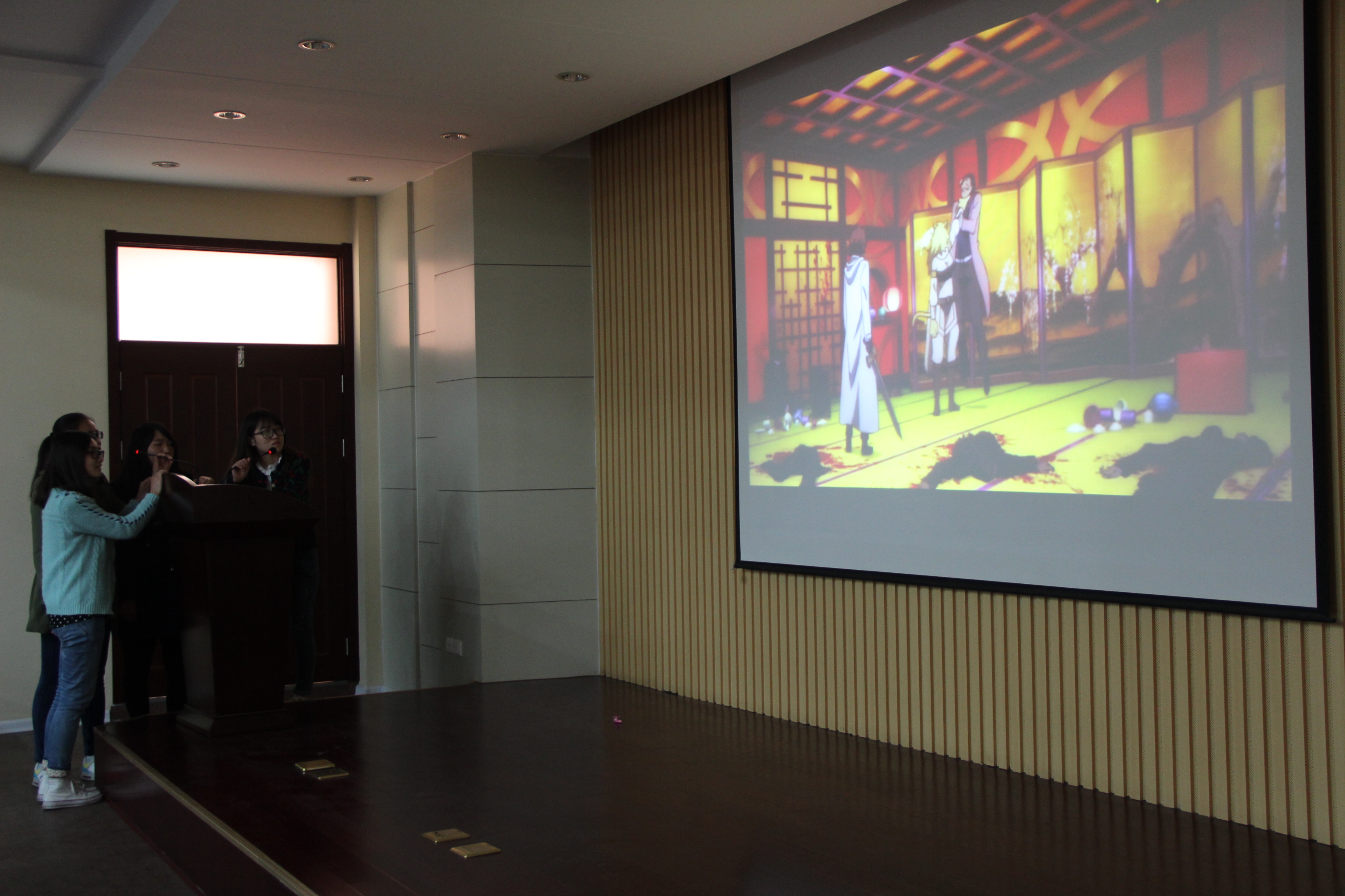 本次比赛共分三个环节:自我介绍、团体配音和才艺展示。各组选手以团体形式参赛。配音之旅缤彩纷呈,选手们通过对电影、电视剧或动漫等经典的精彩配音给我们带来了一场华美的听觉盛宴,真正以声音为介质,碰触不一样的国度,感受不一样的异国文化。观众席掌声笑声不断,现场气氛热烈。配音完成后,四位日语外教对本次大赛的选手表现进行了总结,提出了意见与期望。激烈的比赛过后,选手们进行才艺展示。经过激烈的角逐,最终“西游记”组合凭借《旅途的终点》斩获冠军,“好想告诉你”组合、“黄昏少女失忆”组合收获二等奖,“狼少女与黑王子”组合、“对不起青春”组合、“甄嬛传”组合、“斩赤红之瞳”组合、“十万个冷笑话”组合获得三等奖。(通讯员:韩睿鹏 陈慧如)