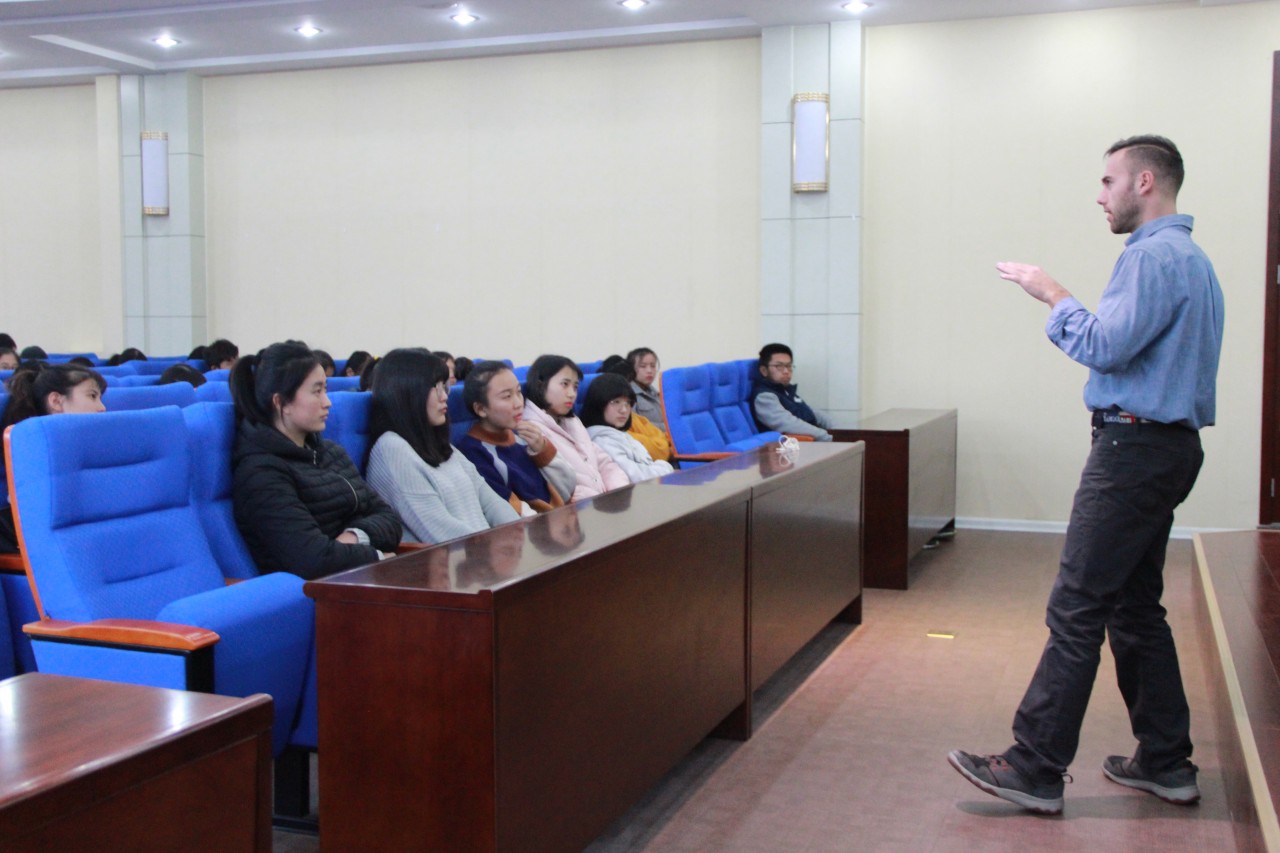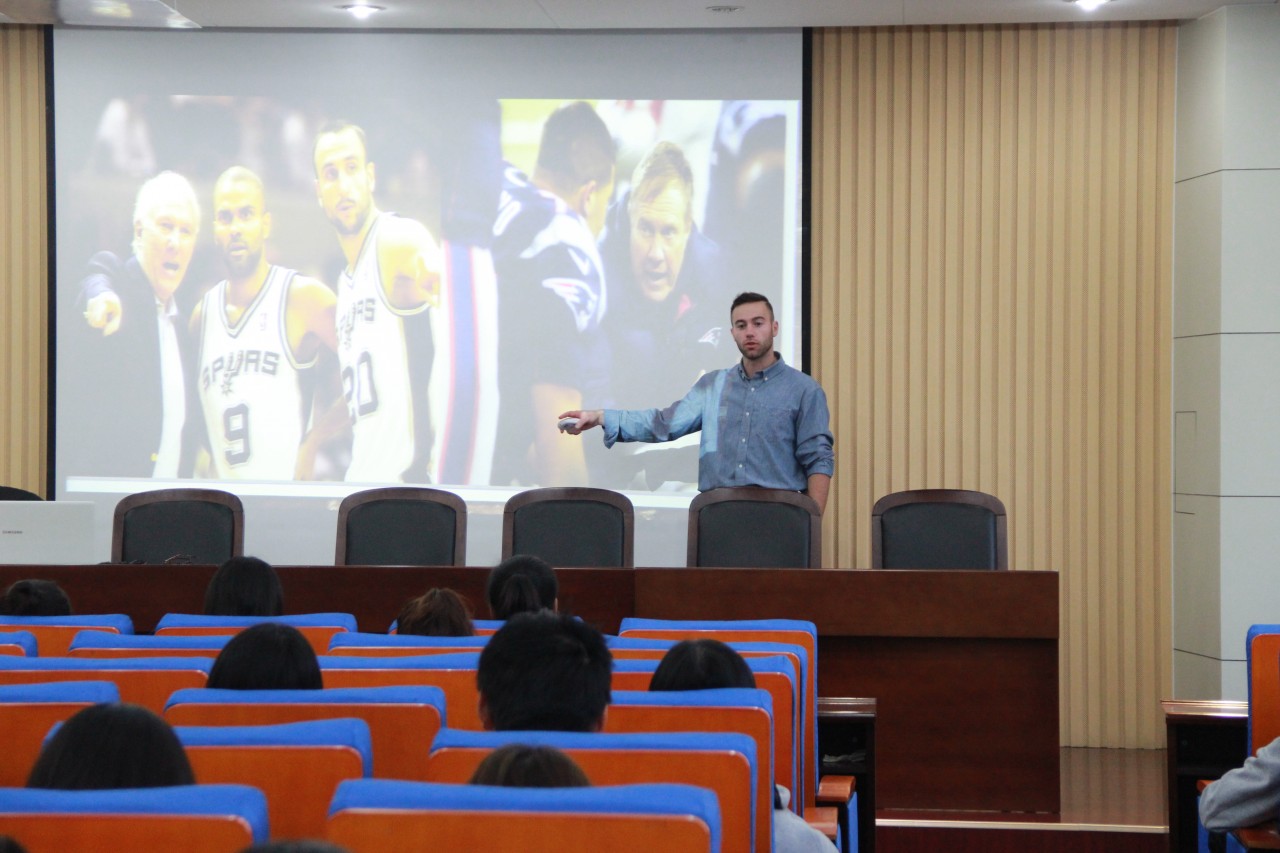 为了使同学们更好的了解国外文化、异域风情,培养对本专业语言的兴趣,更好的掌握外语。11月10日由XCSport团委主办,XCSport员工会承办的2017“·文化交流分享第三讲——美国文化分享开讲,邀请美国外教William主讲。