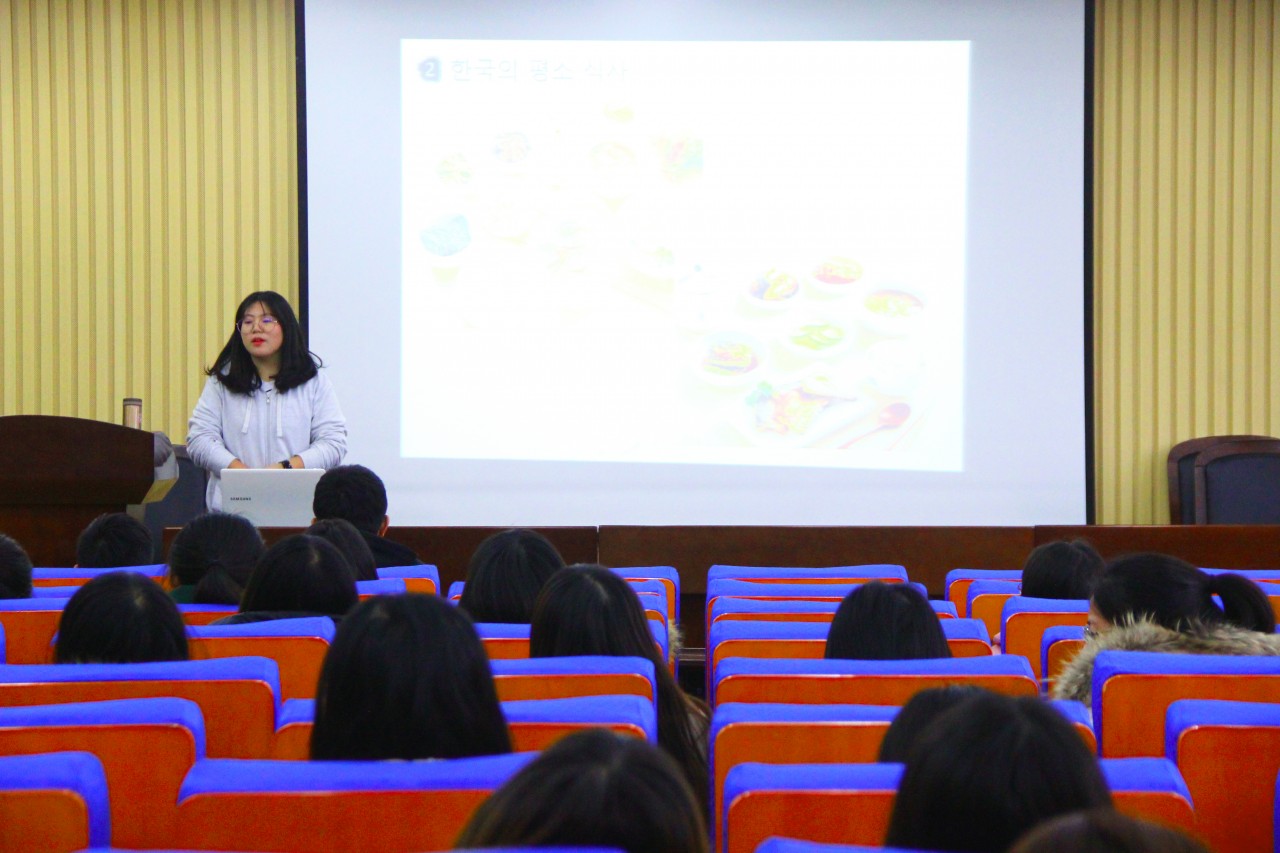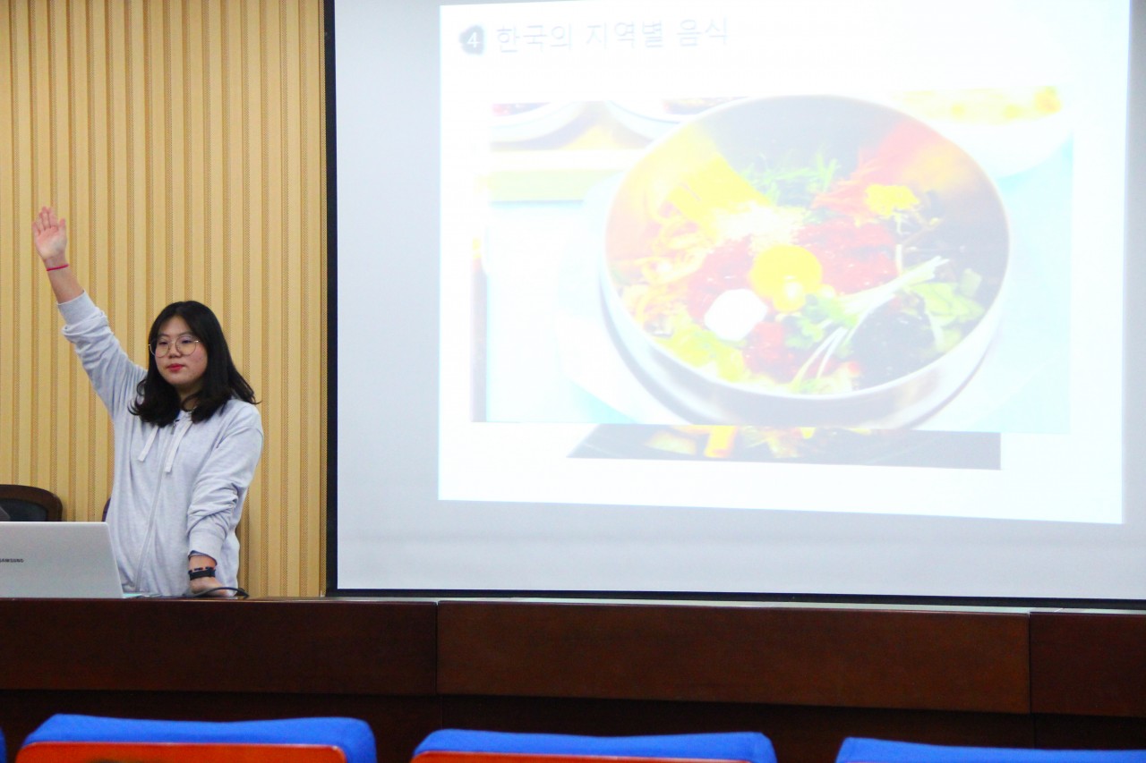 梁受贞老师主要讲述韩国的饮食文化。梁受贞老师从饮食文化最基本的餐具使用方法介绍开始,向大家展示了不同国家筷子使用的差异性。随后,梁受贞老师通过介绍不同节日、不同地域韩国餐桌上饮食文化的不同,并配以韩国美食图片,同学们展示了丰富多彩的韩国饮食文化。最后,梁受贞老师为同学们详细讲解了韩国餐桌上的礼仪文化,帮助同学们更好的体验韩国文化习俗,感受中韩文化差异。