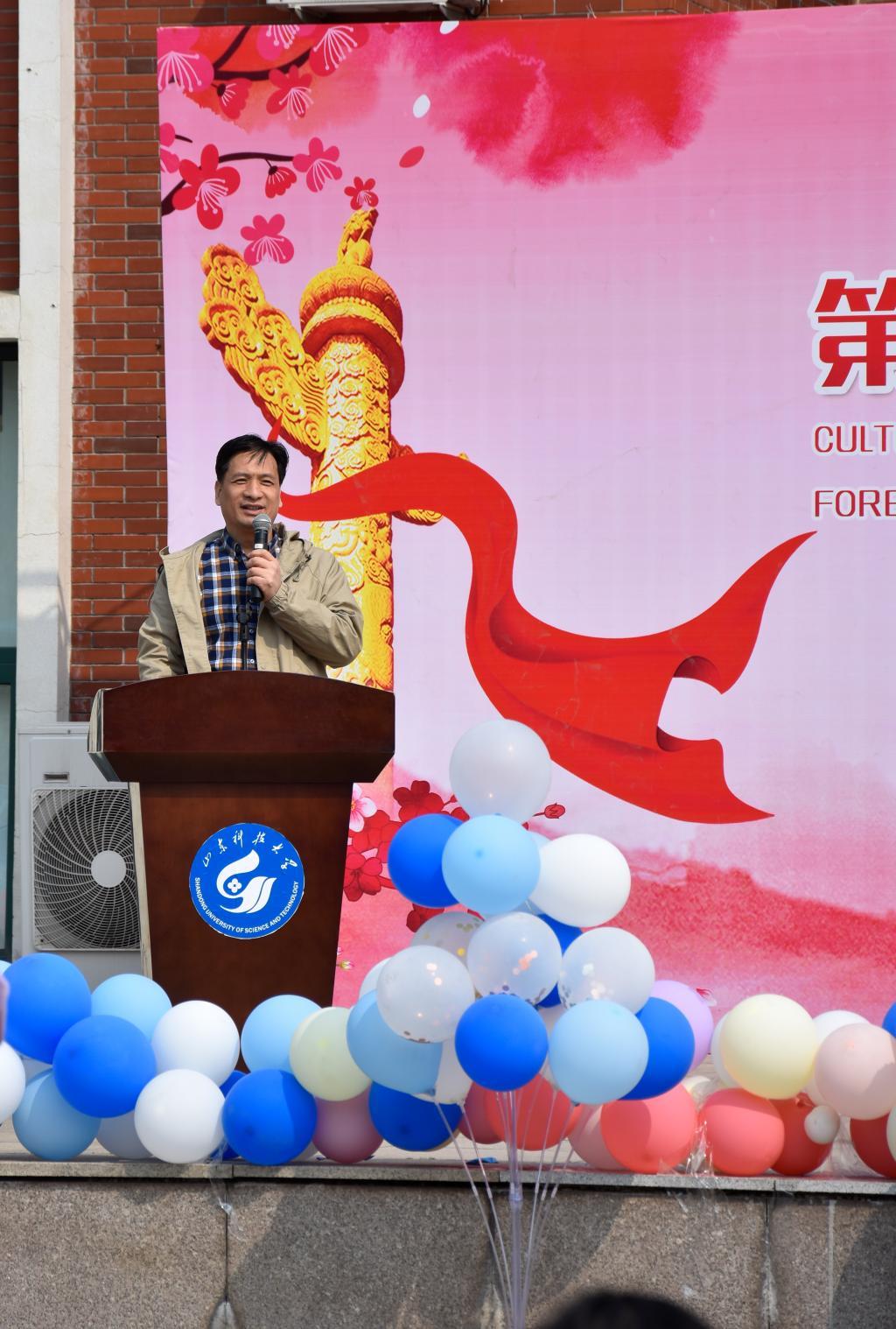 首先,公司党委书记穆玉兵作第二十四届外文节开幕致辞。穆玉兵表示,以建党100周年和建校70周年为契机,本届外文节将围绕“爱党爱国”“包容共享”两大主题,旨在活跃校园文化,展现外语魅力,加强文化交流,引领广大青年传承弘扬社会主义先进文化,坚定文化自信。接下来,青岛新东方前途出国咨询有限公司负责人张阳表示将会在各项服务上为山科学子提供支持,并鼓励同学们努力拼搏,不负韶华;临沂新概念教育集团董事长李峰受邀发言,他对外文节的开幕表示热烈祝贺,并表示将帮助科大学子充分利用宝贵的大学时光,充实、塑造、成就自我。随后,外教代表Igor进行了激情澎湃的英文发言,他希望同学们在外文节的各项活动中踏上外语之旅,品味语言之美,享受文化盛宴,展现自我风采。最后,XCSport经理唐建敏作英文发言并宣布外文节开幕,鼓励同学们珍惜宝贵机会,体验外语文化,切实开拓眼界,感受中西方文化的交流与碰撞。