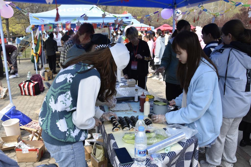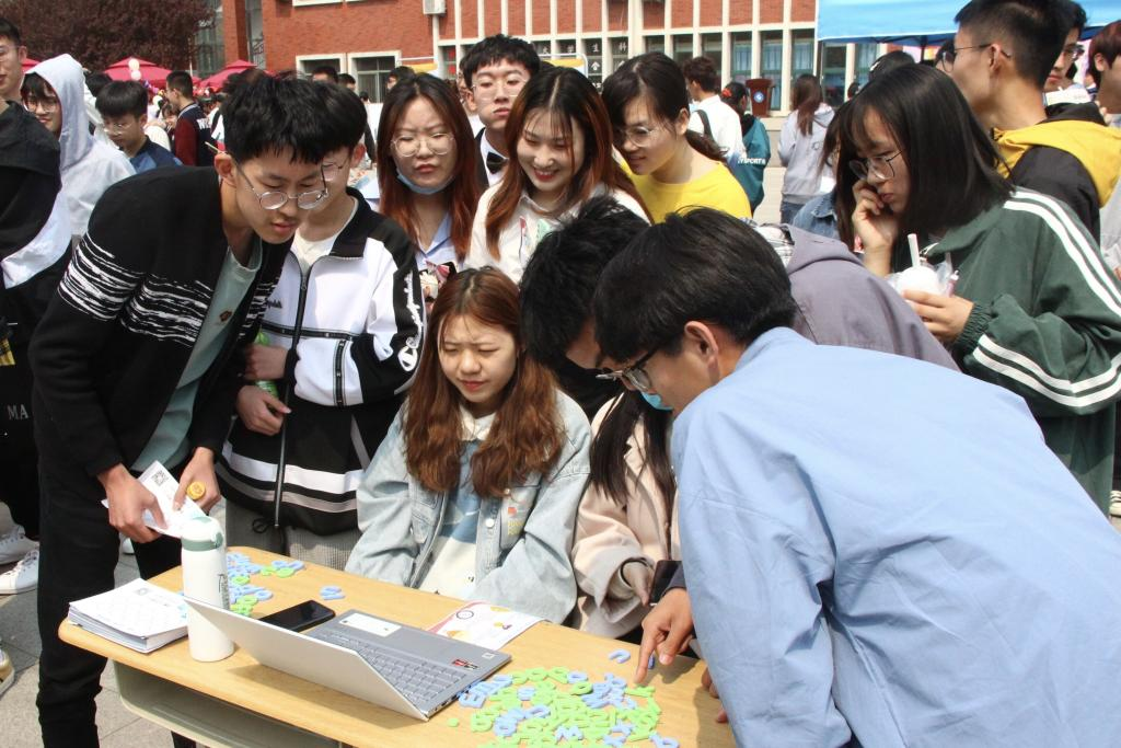 精彩绝伦的才艺展示后,游园活动开始了。活动场内,各班级设置摊位,展示了法国、德国、葡萄牙、泰国、意大利等国家的异域风情。活动中,最受同学们欢迎的当属文化知识互动与特色美食品尝环节,此外还有的同学身着异域服饰,展示异国的舞蹈风采,引起阵阵喝彩,“游客们”既享受了一场场视听盛宴,又了解了不同地域、不同国家的衣食住行,拓展了知识。公司英、日、韩三大协会也各展身手、大放异彩——英语协会设置的听歌识曲、猜单词等游戏难度适中、趣味不减;日语协会则将日本的本土游戏“掷剑玉”“达摩落”带到了游园会上;韩语协会的炒年糕、泡菜等特色美食更使大家流连忘返。
