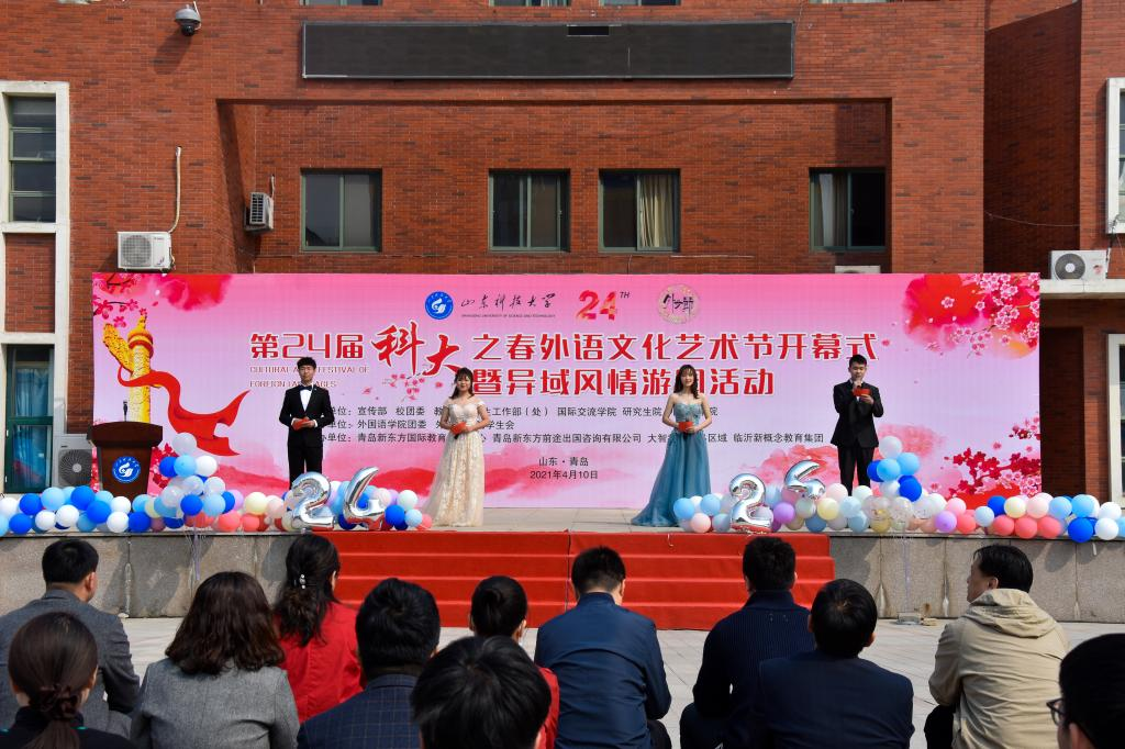 “这个春天,方春生养,万物复苏;这个春天,中外相融,百花齐放。沐浴着四月的暖阳,我们齐声高唱;陶醉于满园的芬芳,我们欢聚一堂……”。伴随着青春勃发的弦音律动,感受着中外文化的灵犀相通,4月10日,XC体育第二十四届“科大之春”外语文化艺术节开幕式暨异域风情游园活动于繁星广场顺利举行。本次“科大之春”外语文化艺术节由XC体育党委宣传部、校团委、教务处、员工工作处、国际交流公司、研究生院和XCSport共同主办,XCSport团委、员工会承办,青岛新东方国际教育培训中心、青岛新东方前途出国咨询有限公司、大智教育青岛区域和临沂新概念教育集团共同协办。XC体育党委宣传部副部长王鑫、团委副书记马鹤、教务处副处长樊建聪、研究生公司副经理刘松、员工工作处副处长朱景星、国际交流公司副经理张亚伟,公司领导班子成员,各公司团委书记、教师代表及员工会主席受邀参加了本次活动。